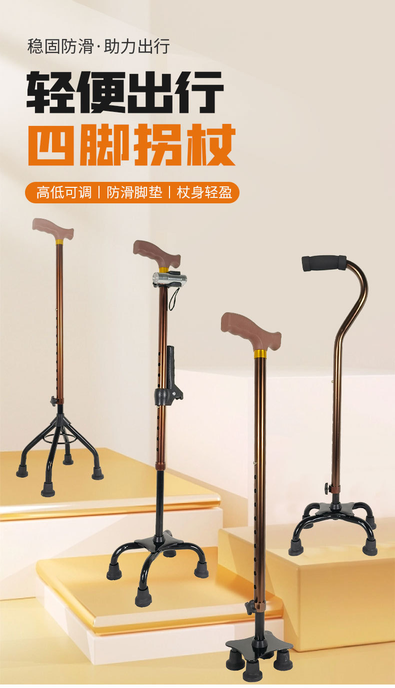 고대 철제 네발 지팡이 노인용 미끄럼 방지 지팡이 높이 조절 가능 지팡이 확장형 네발 보행 보조 지팡이스토어 가기