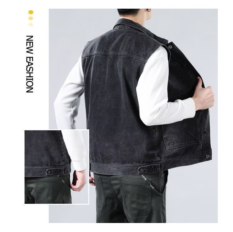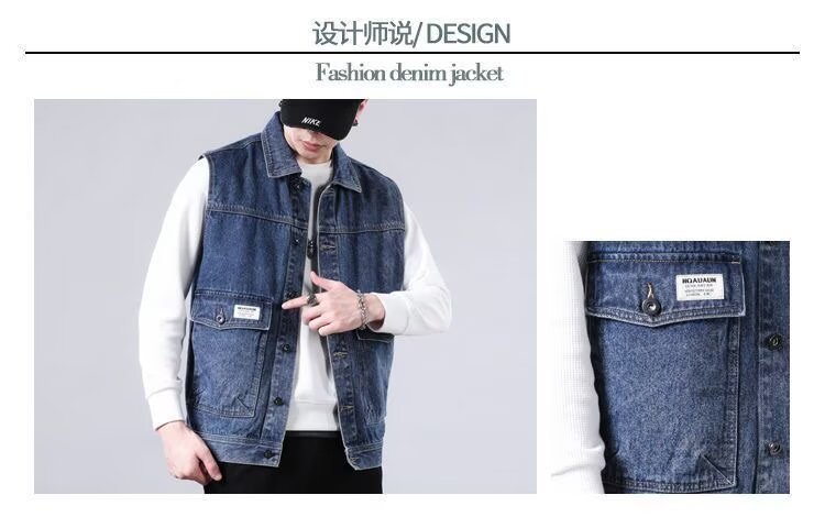 봄 여름 새로운 트렌디 브랜드 데님 조끼 재킷 남성 패션 트렌디 루즈 양복 조끼 남성 민소매 작업 재킷스토어 가기