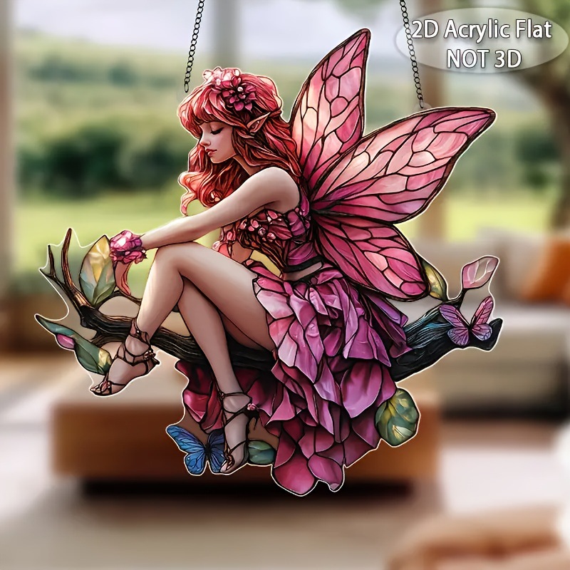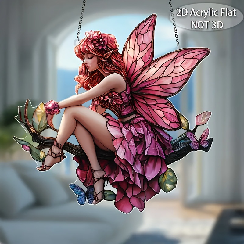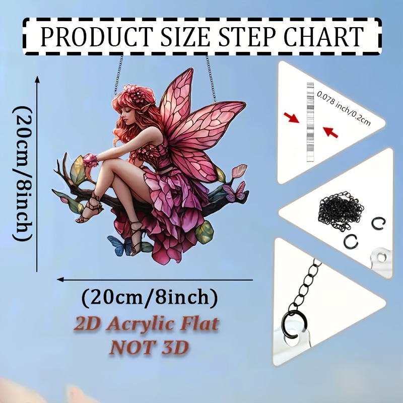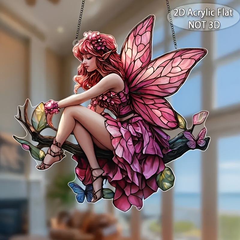 2D 평면, 핑크 요정 아크릴 펜던트 1개 - 8inchx8inch 드림 캐처, 적합