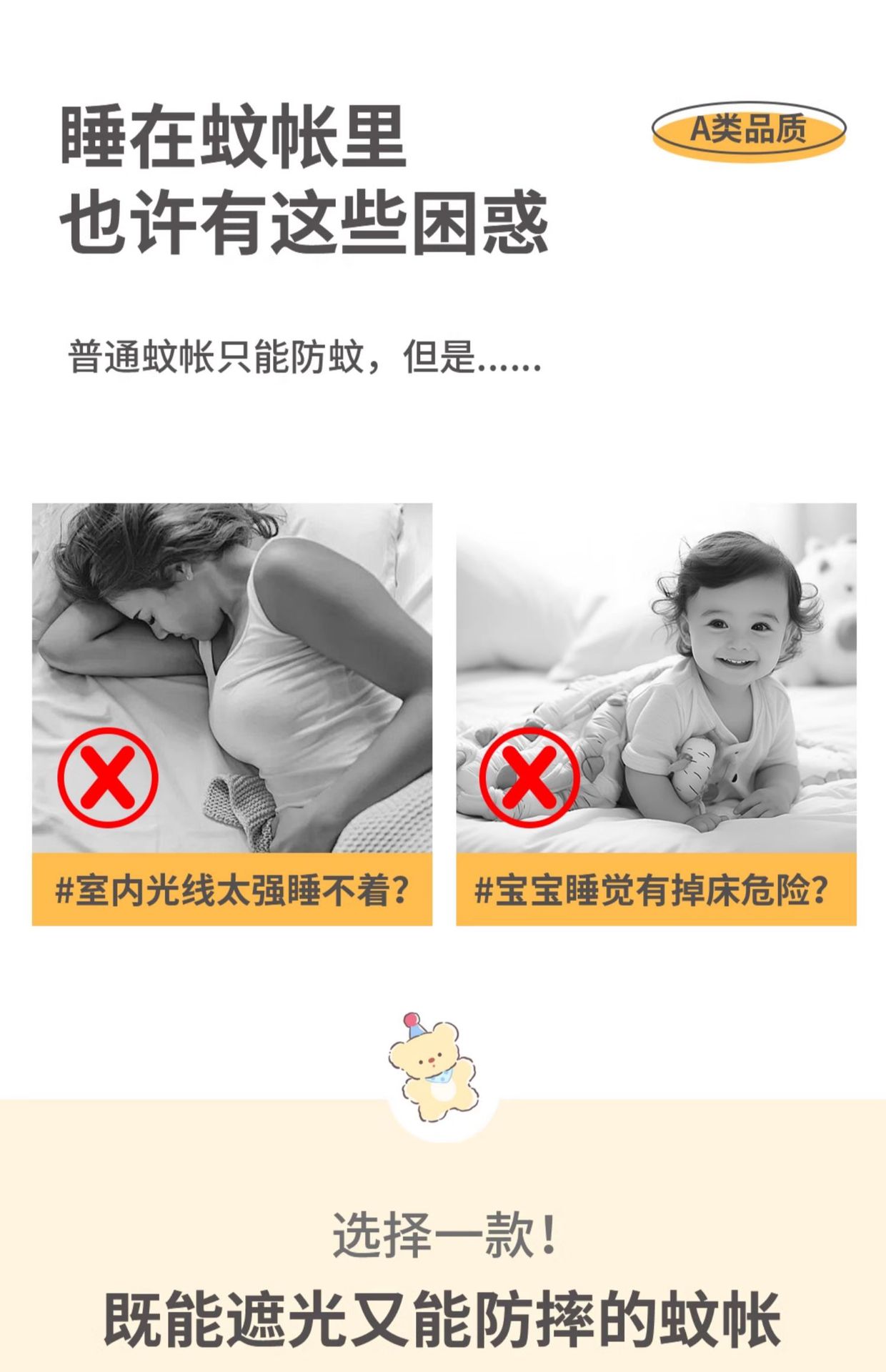 낙하 방지 모기장, 가정용 모기 방지 벨트, 블랙아웃 침대 커튼, 침대 커튼, 2025 새로운 모성 및 유아용 모기장, 강화된 방지스토어 가기