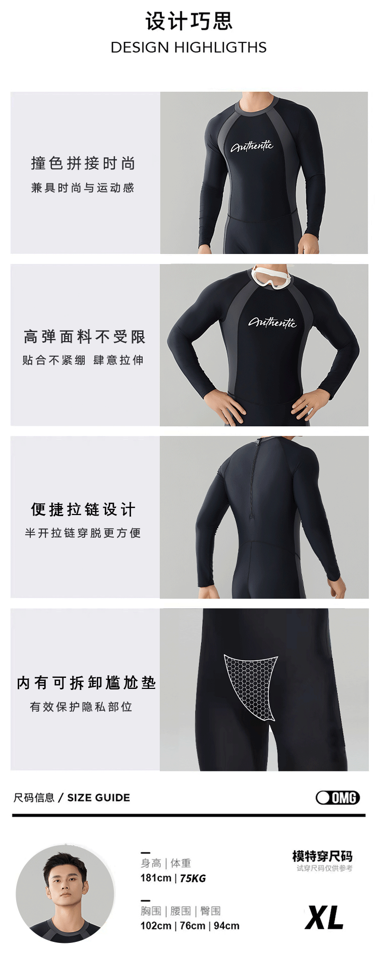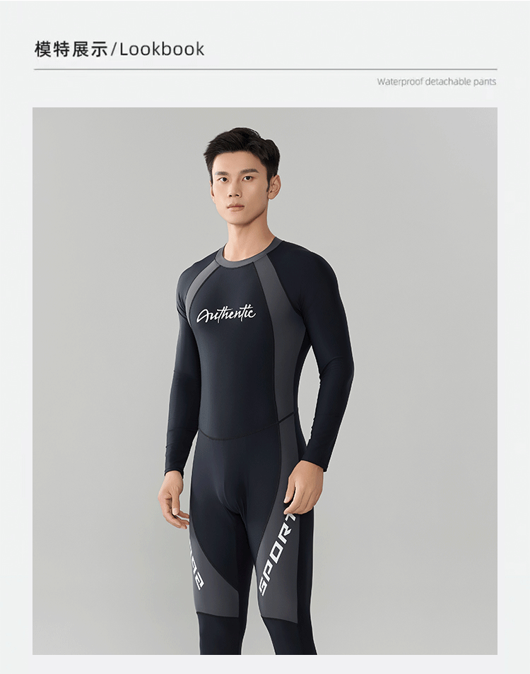 2025 새로운 슬림 배 남성 원피스 슬리밍 태양 보호 긴팔 바지 잠수복 코치 온천 서핑 도매스토어 가기