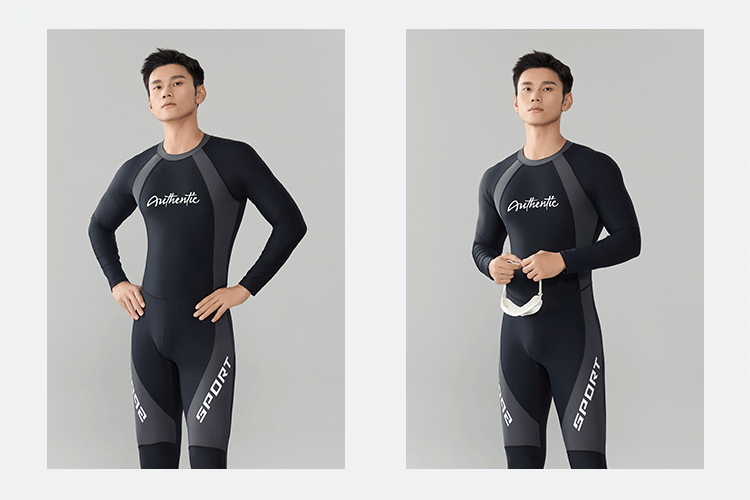 2025 새로운 슬림 배 남성 원피스 슬리밍 태양 보호 긴팔 바지 잠수복 코치 온천 서핑 도매