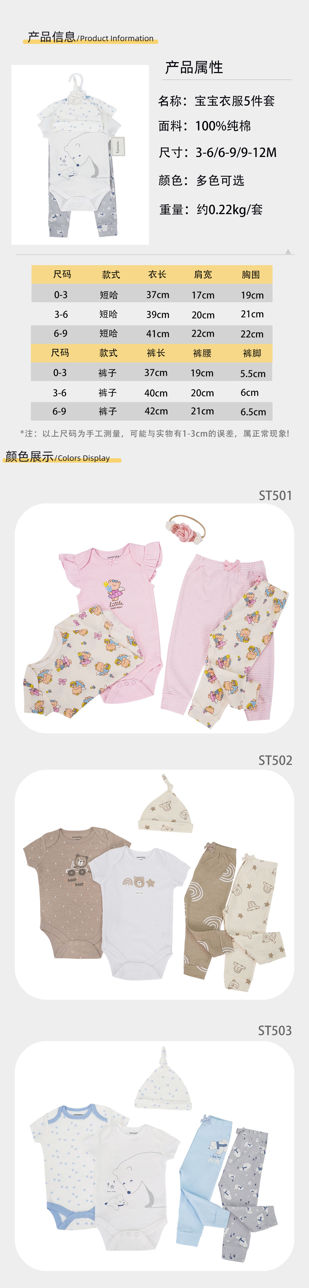 순면 아기 여름 옷 5종 세트, 신생아 모기 방지 바지 세트, 아기 크롤링 옷, 바지, 모자, 선물 세트스토어 가기