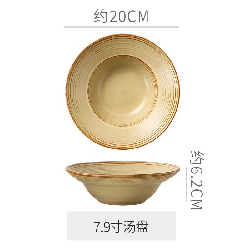 레트로 일본식 나사 세라믹 식기 레스토랑 파스타 샐러드 밀짚 모자 그릇 디핑 접시 가정용 접시 수프 접시 국수 그릇