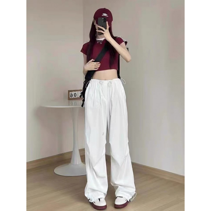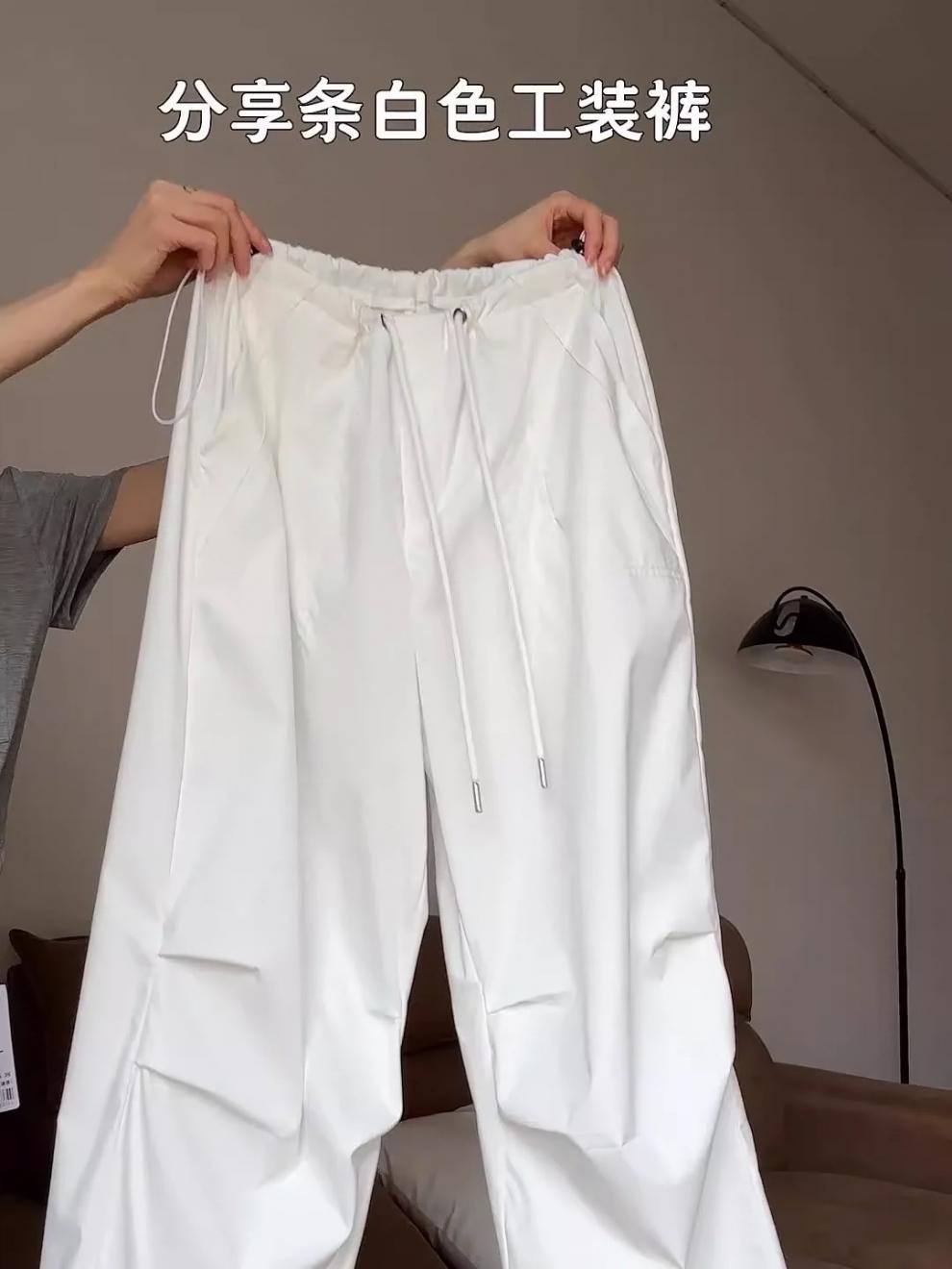 여성용 흰색 속건성 작업복 봄 여름 2025 새로운 하이 웨이스트 와이드 레그 아메리칸 패러슈트 루즈 하이킹 스포츠 바지스토어 가기