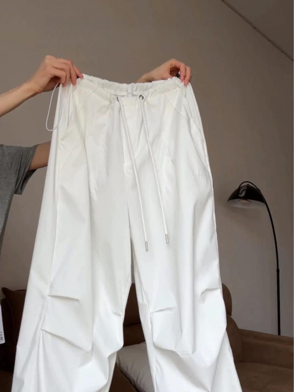 여성용 흰색 속건성 작업복 봄 여름 2025 새로운 하이 웨이스트 와이드 레그 아메리칸 패러슈트 루즈 하이킹 스포츠 바지