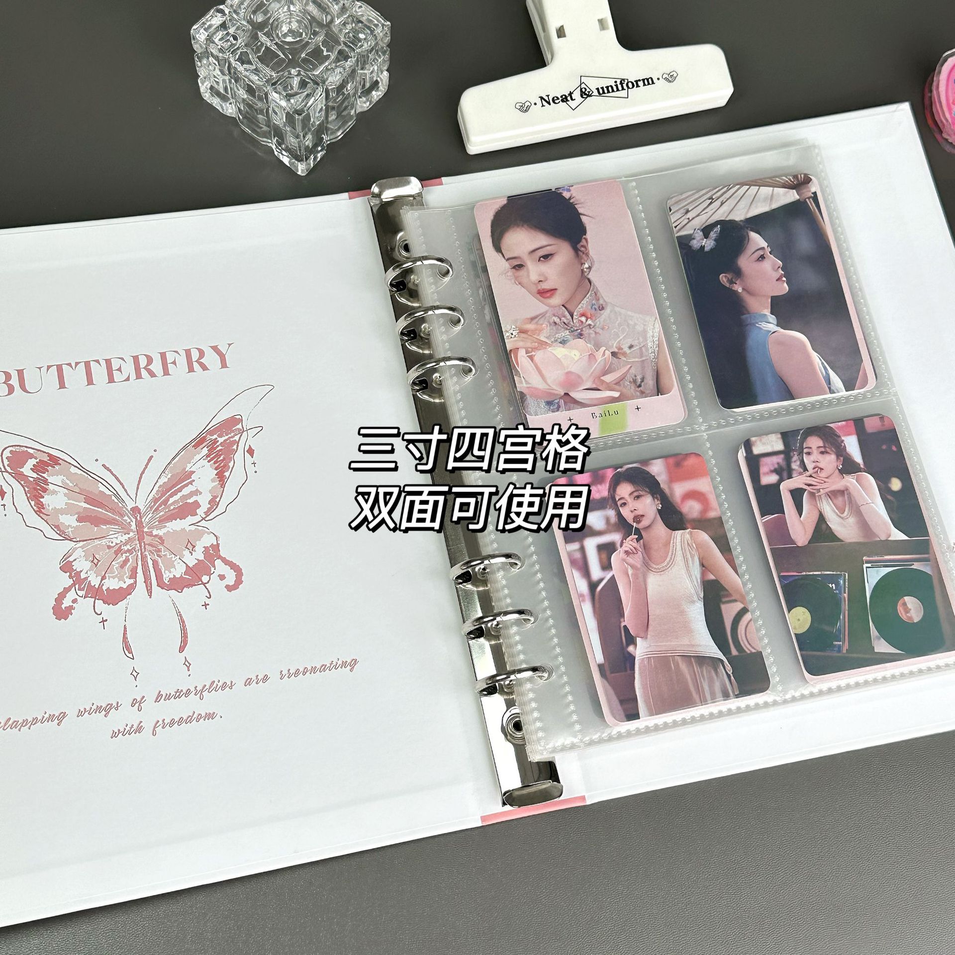 프로스트 파우더 버터플라이 카드북 A5 루스리프 학생 4각형 슈퍼 하드 쉘 귀여운 아이돌 분리형 수납 카드북스토어 가기
