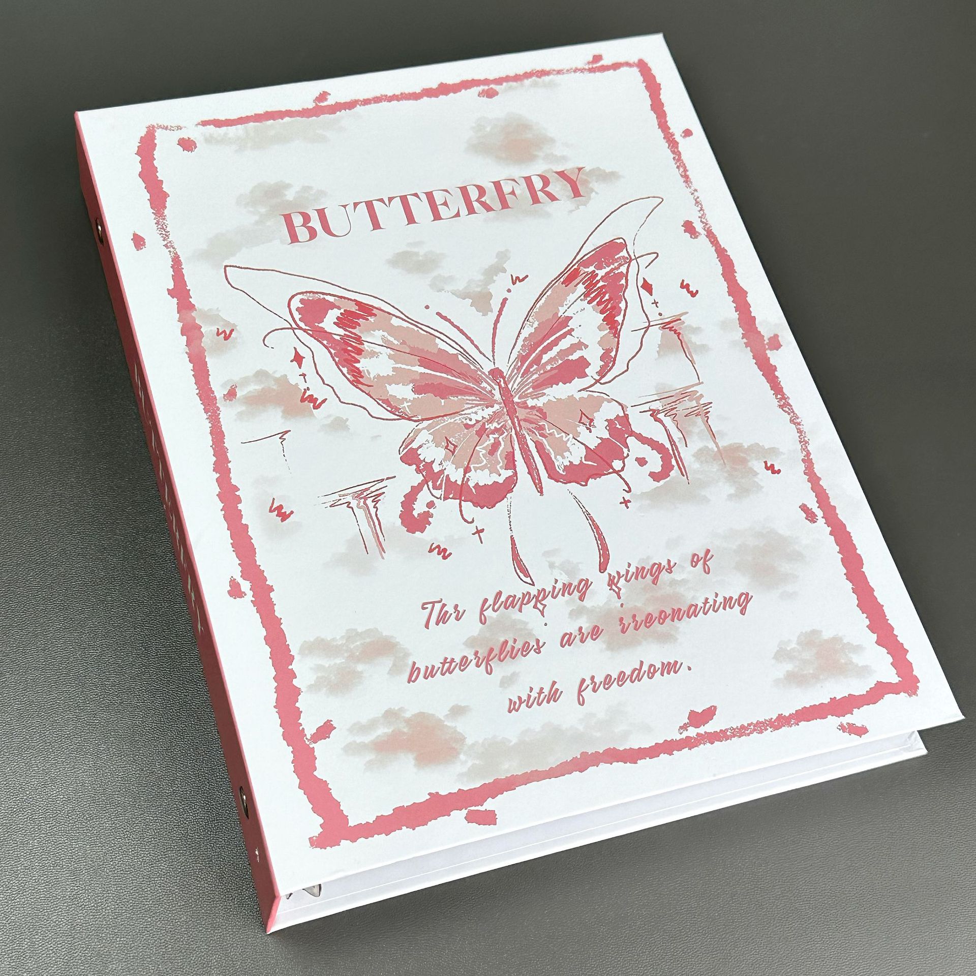 프로스트 파우더 버터플라이 카드북 A5 루스리프 학생 4각형 슈퍼 하드 쉘 귀여운 아이돌 분리형 수납 카드북