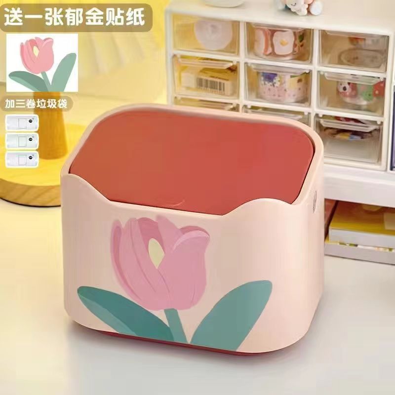 수납통, 튤립, 멜론씨드, 귀여운 작은 쓰레기 디자인, 틈새학생 꽃 데스크탑 쓰레기통, 무료배송스토어 가기