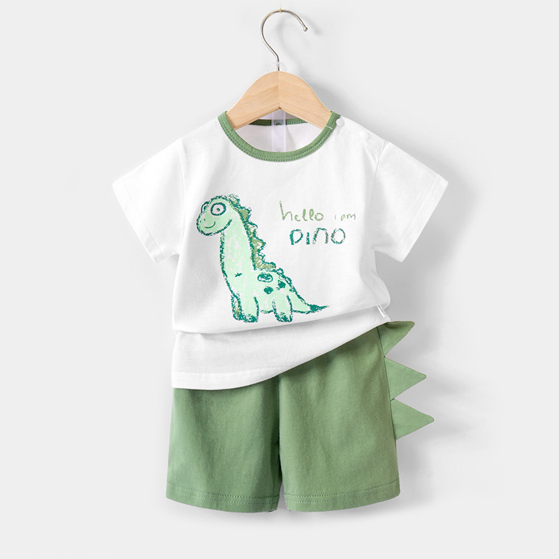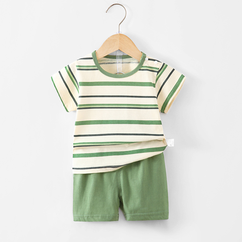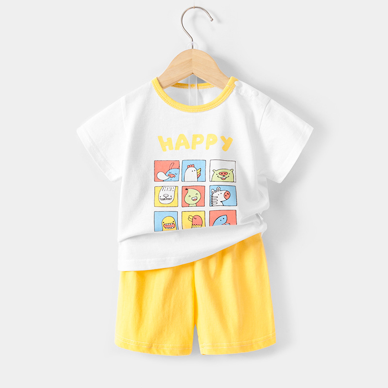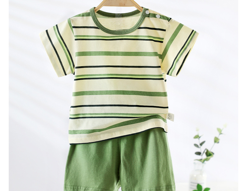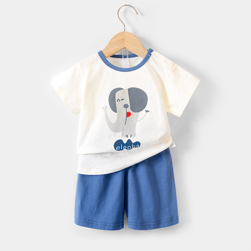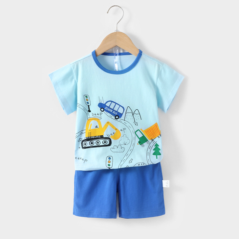 다운스트림 핫 세일 어린이 반팔 양복 여름 얇은 캐주얼 투피스 세트 남성과 여성 베이비 잠옷 순수 코튼 반바지스토어 가기