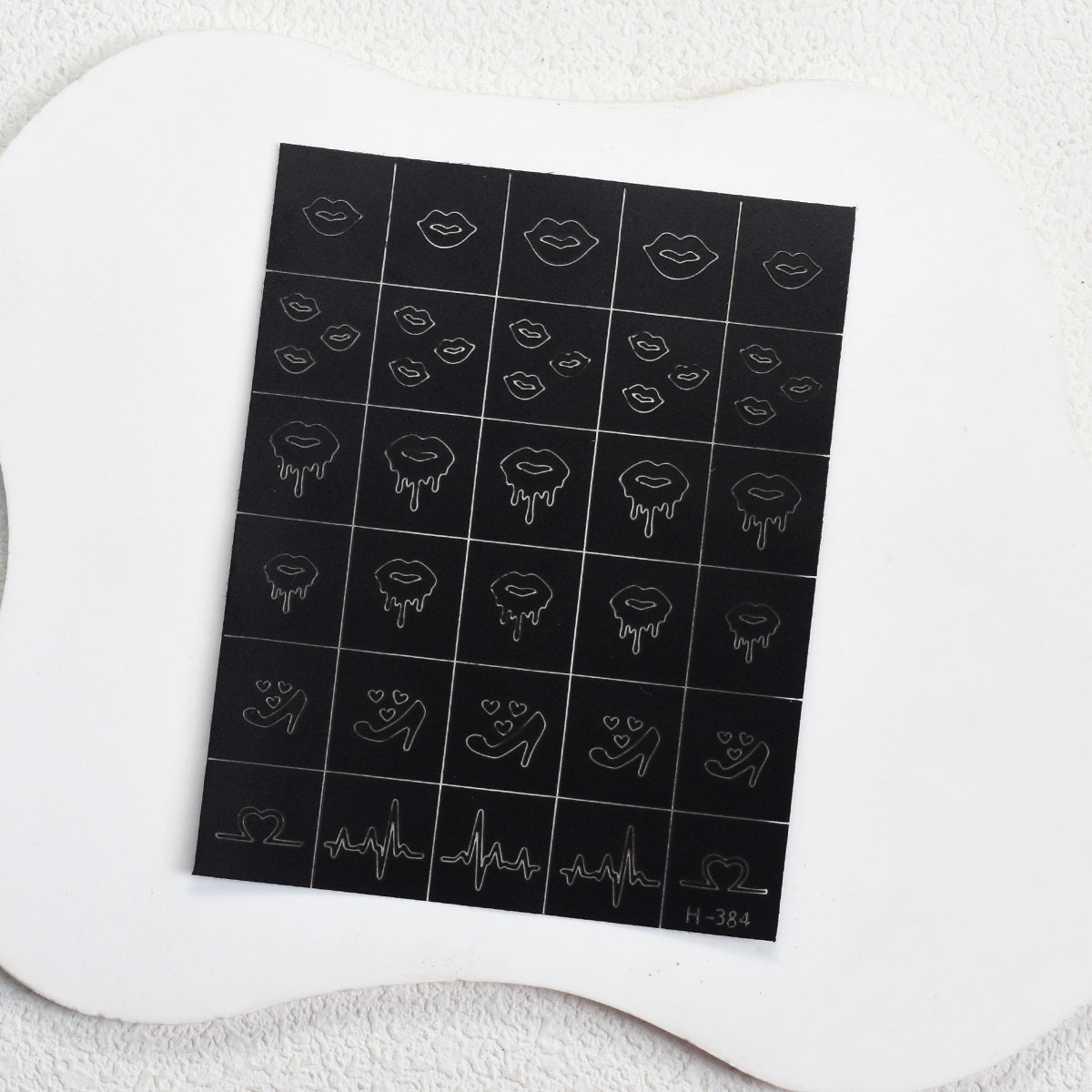 인터넷 연예인 인기 프랑스 스타일 중공 스프레이 페인팅 네일 아트 스티커 줄무늬 불규칙한 다양한 패턴 네일 스티커 제조 업체 도매스토어 가기