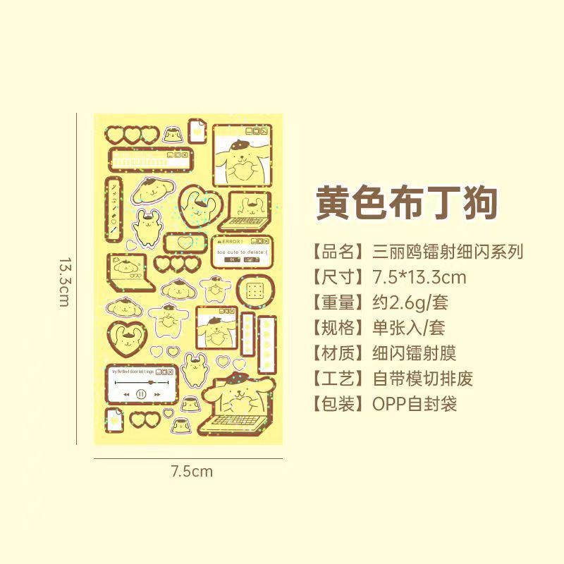 일본 산리오 쿠로미 멜로디 레이저 구카 스티커 크리 에이 티브 구카 스티커 귀여운 핸드북 장식 스티커