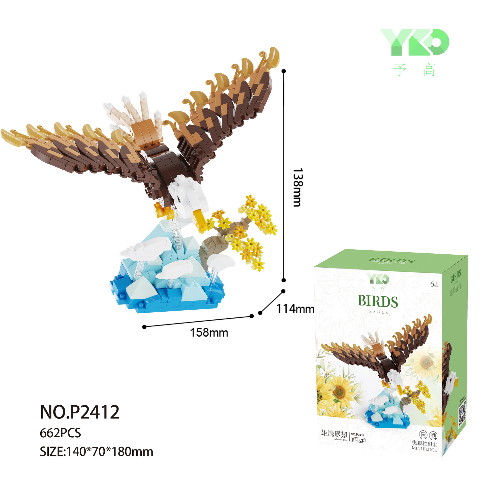 Yugao 미세 입자 크리 에이 티브 조립 빌딩 블록 장난감 P2409-2412 플라잉 버드 시리즈 도매 배송스토어 가기
