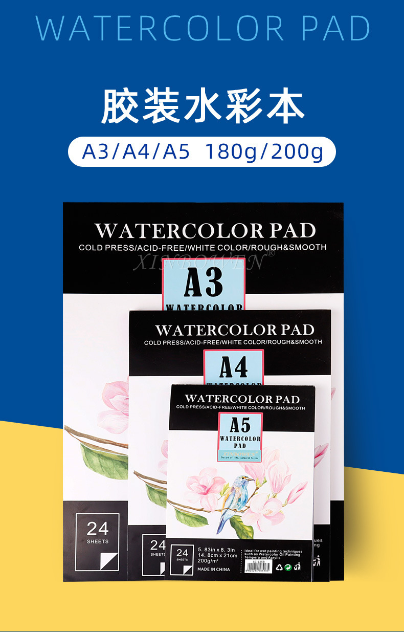 사용자 정의 수채화 책 200g 목재 펄프 단면 접착제 A3A4A5 초보자 미술 학생 그림 수채화 용지 도매스토어 가기