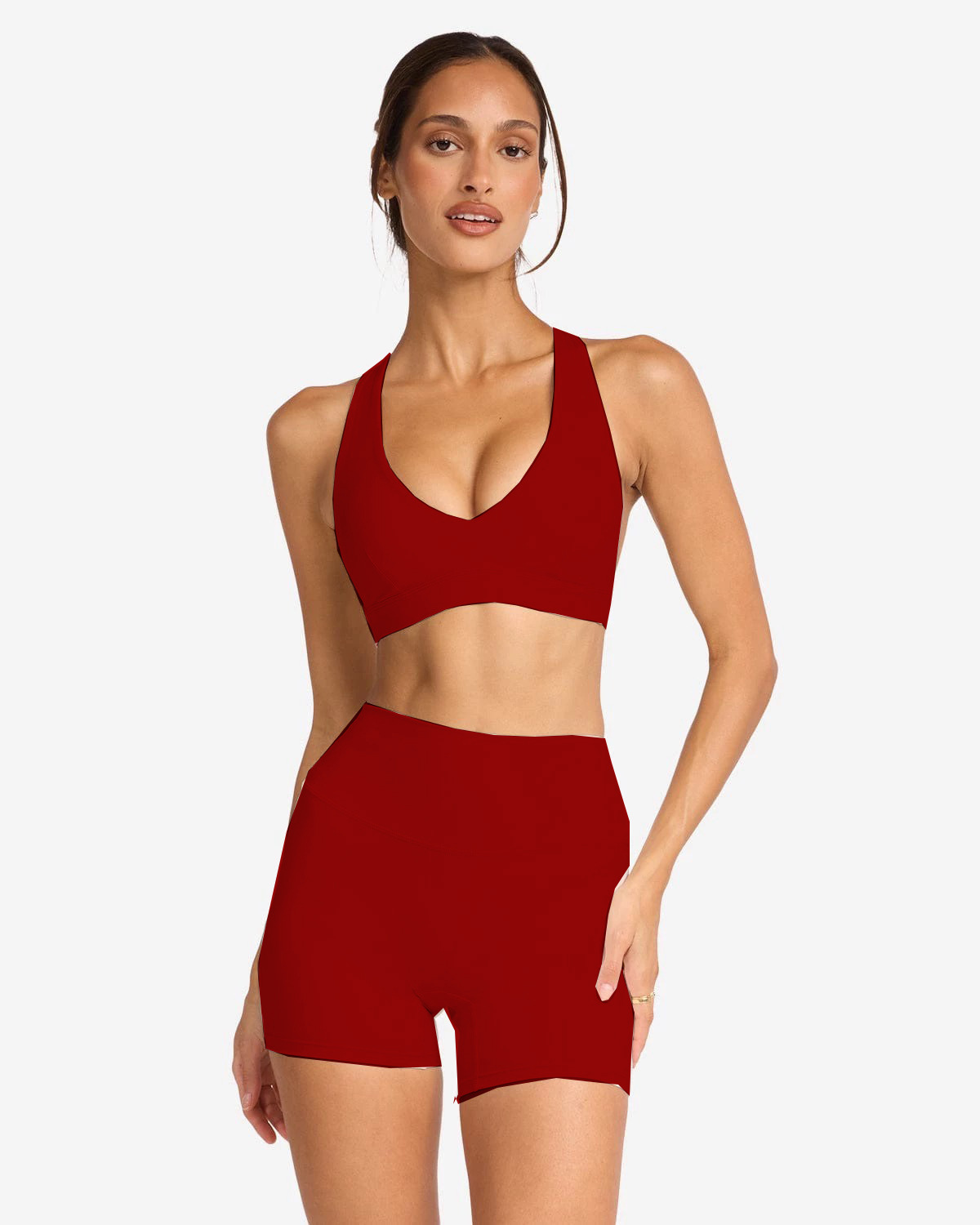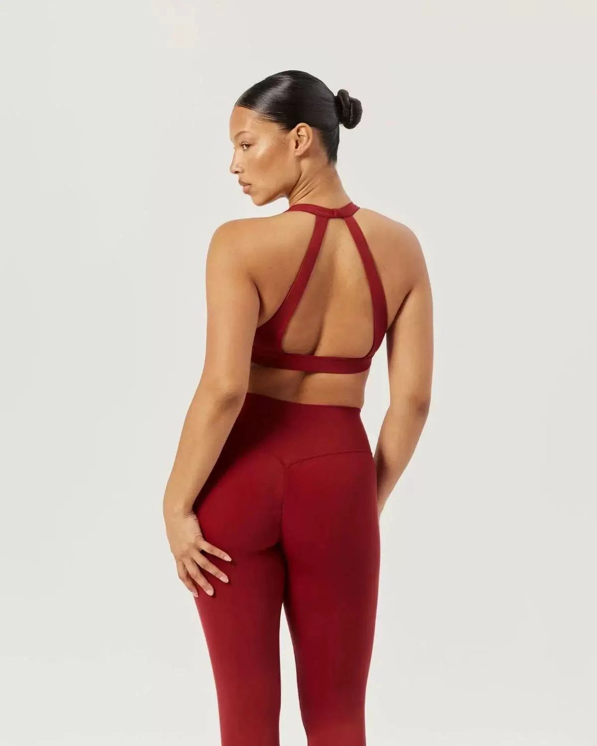가슴 패드가 포함된 여성용 대외 무역 크로스보더 요가 슈트, 가슴을 감싸고 등이 아름다운 브라, 하이웨이스트 속건성 스포츠 피트니스 트레이닝 팬츠스토어 가기