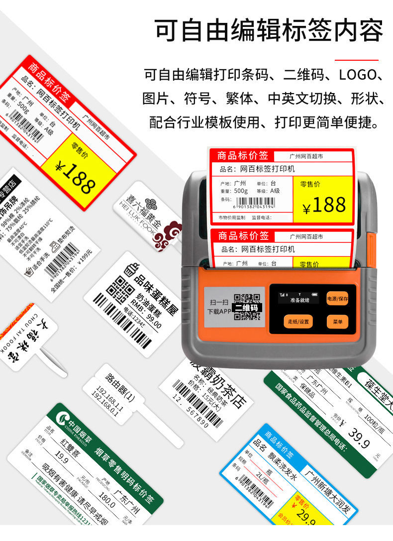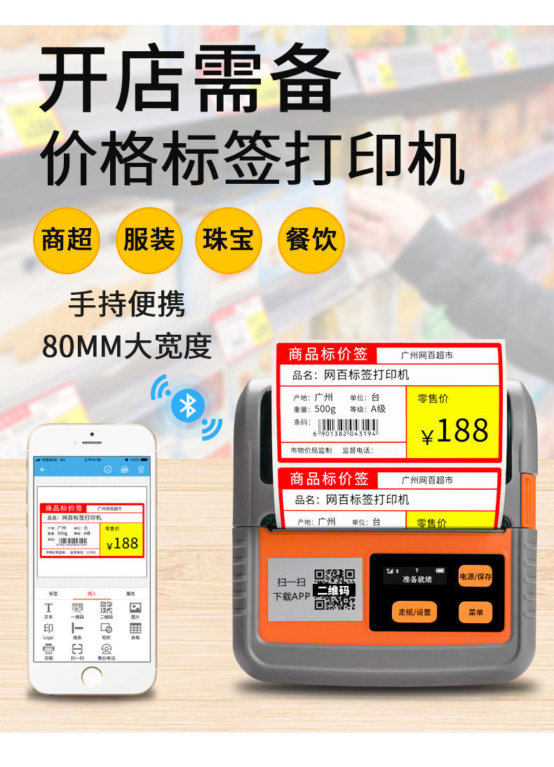 Jiabo m322 프린터 열 휴대용 자체 접착 바코드 슈퍼마켓 쇼핑몰 가격 라벨 프린터 약국