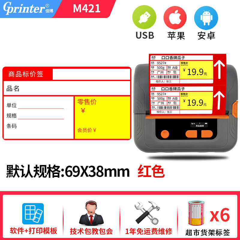 Jiabo m322 프린터 열 휴대용 자체 접착 바코드 슈퍼마켓 쇼핑몰 가격 라벨 프린터 약국스토어 가기