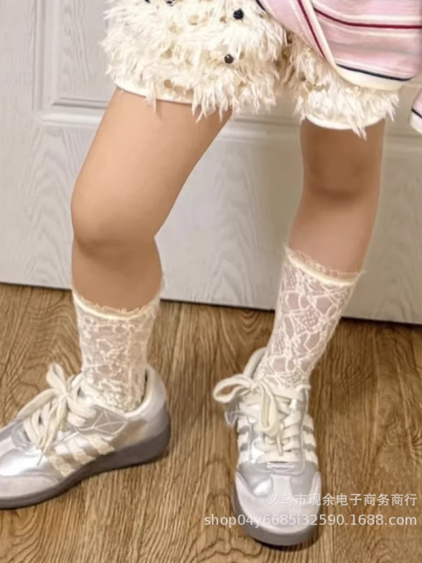 2026 봄 여름 신상품 한국 레이스 종아리 양말 유아용 얇은 레이스 여아 양말 파일드 메쉬 양말 어린이용