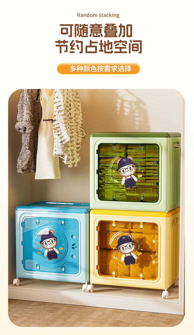 접이식 보관 상자 다기능 바퀴 달린 의류 보관 접이식 상자 대용량 플립 침실 두꺼운 보관 캐비닛