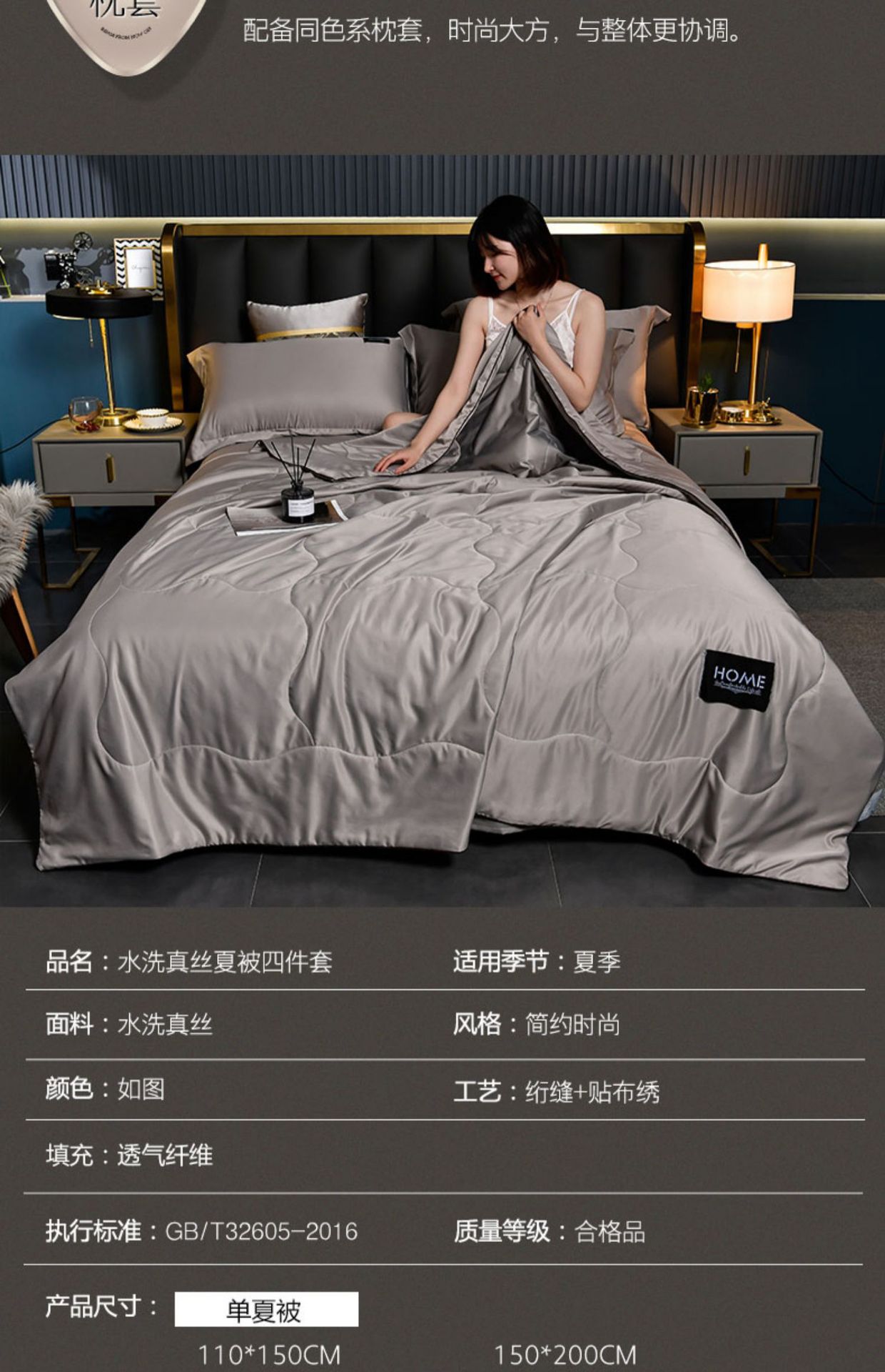 • 200*230cm 아이스 실크 여름 이불 4종 세트 [여름 이불 1장 + 침대 시트 1장 + 베갯잇 2장]