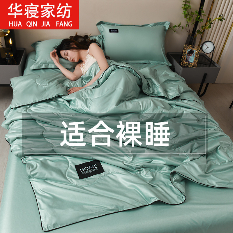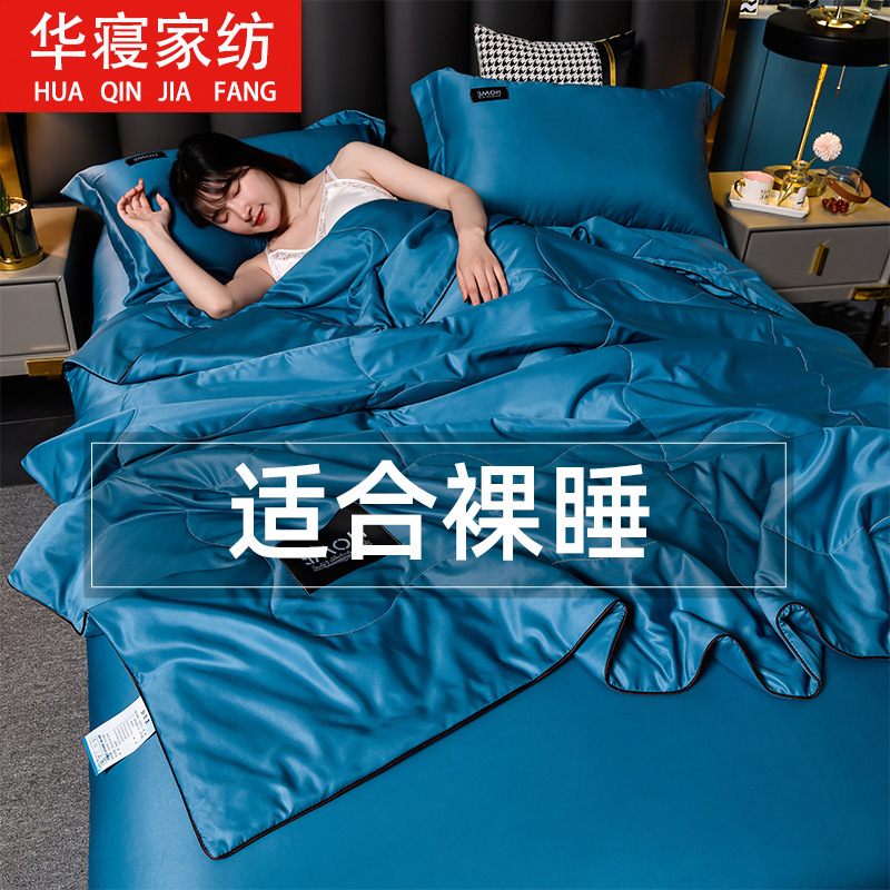 아이스 실크 여름 이불, 에어컨 이불, 여름 시원한 이불, 4피스 침대 시트 세트, 여름 세탁기로 세탁 가능한 3피스 싱글 및 더블 이불