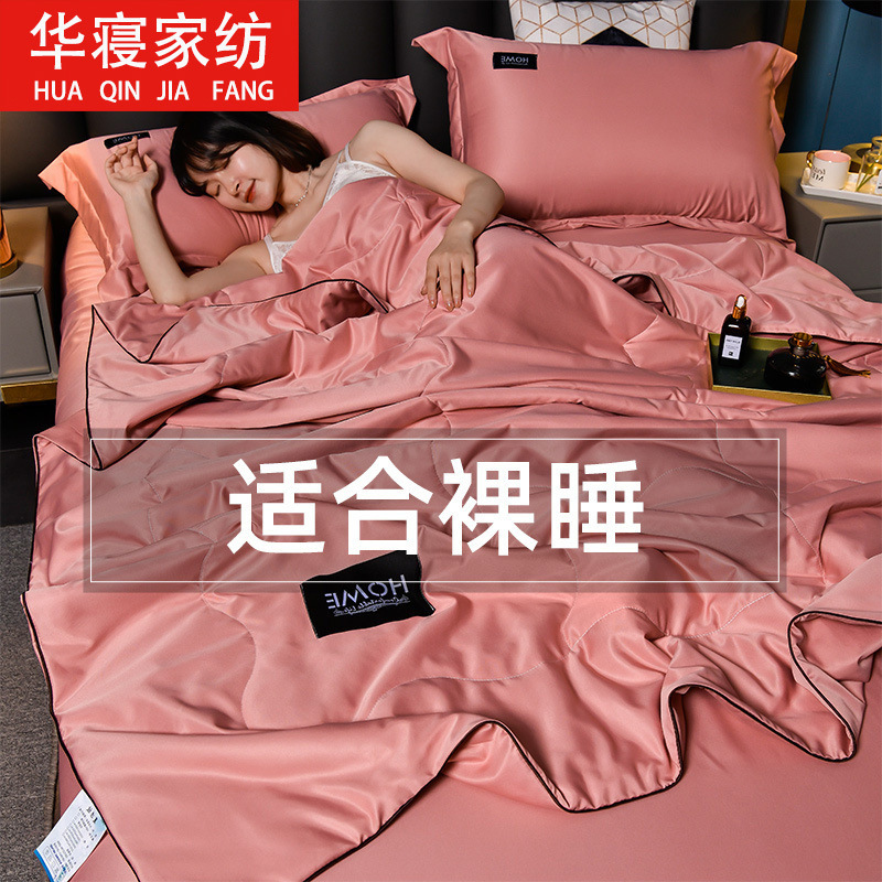 아이스 실크 여름 이불, 에어컨 이불, 여름 시원한 이불, 4피스 침대 시트 세트, 여름 세탁기로 세탁 가능한 3피스 싱글 및 더블 이불스토어 가기