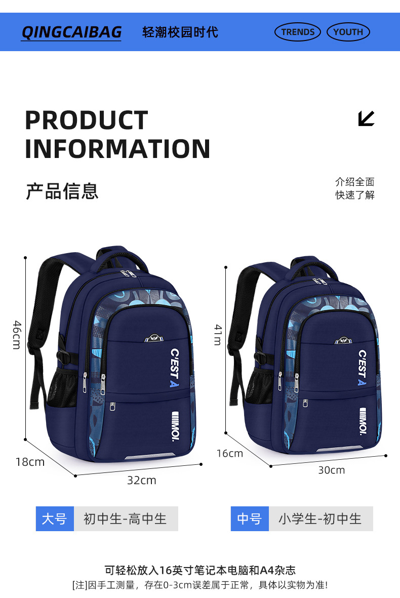 초등학생, 1, 2, 3~6학년, 중학생을 위한 국경 간 새 소년 책가방, 대용량 도매 배낭스토어 가기