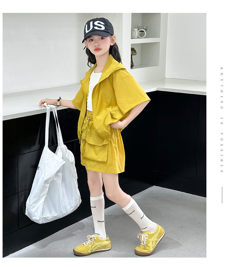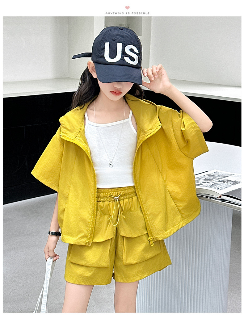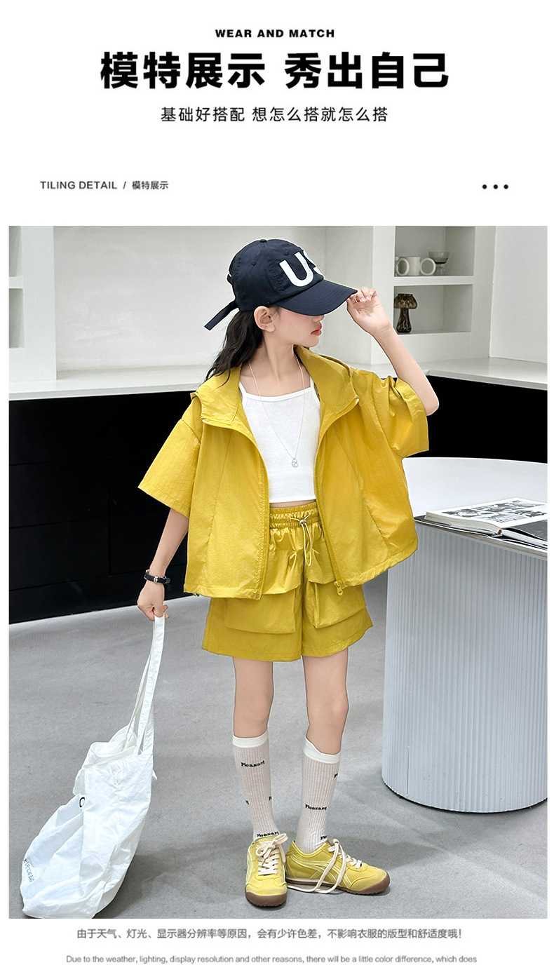 아동복 2025 여름 새로운 한국 스타일 아동용 후드 반팔 반바지 소년과 소녀를위한 투피스 자외선 차단 의류 세트
