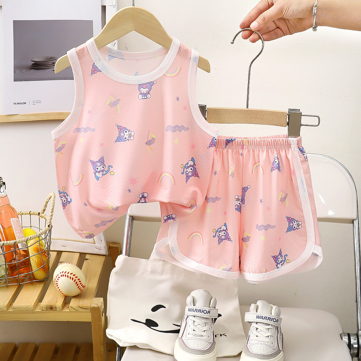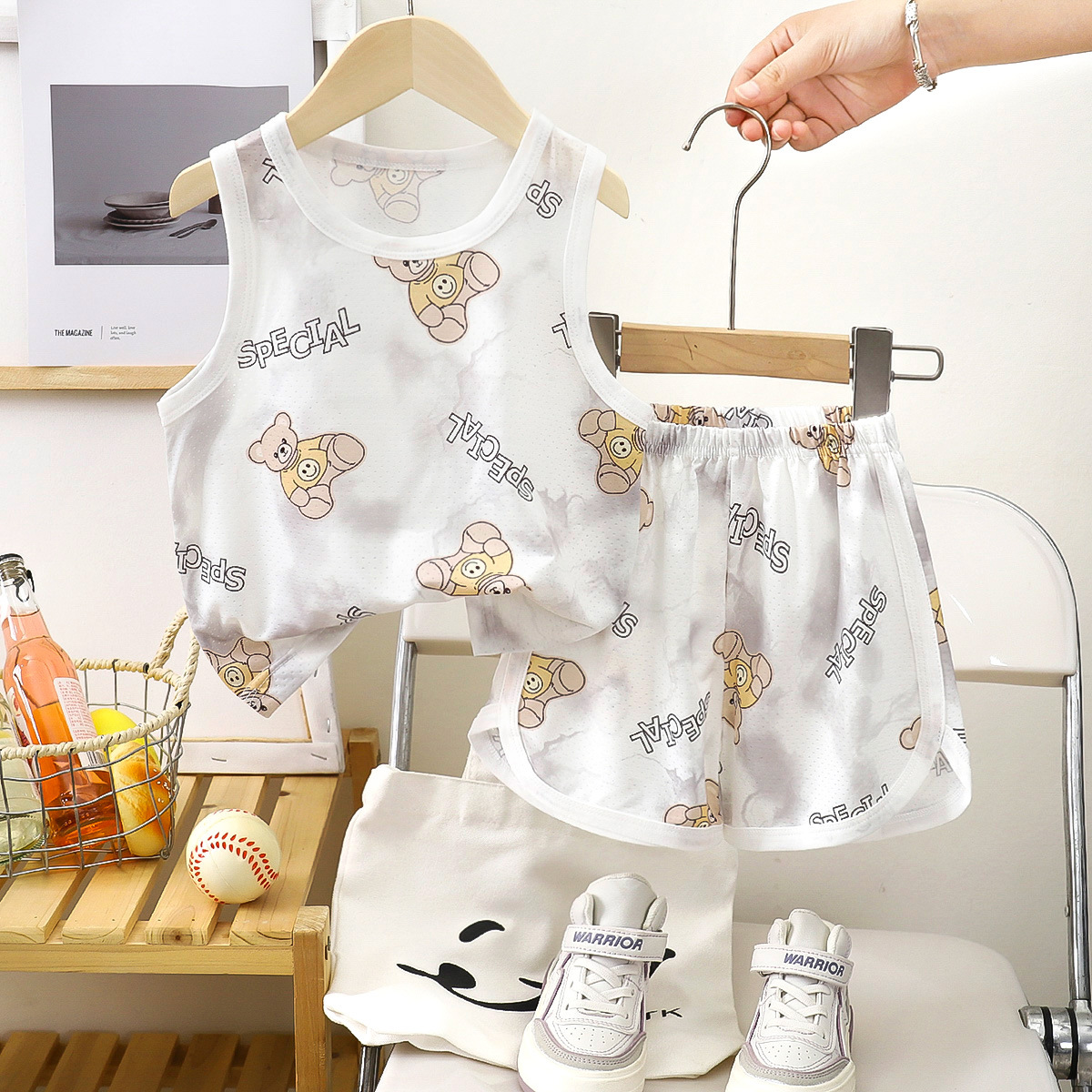 아동용 조끼 세트 클래스 A 얼음 실크 속건성 여름 얇은 서스펜더 반바지 소년 소녀 베이비 스포츠 투피스 세트