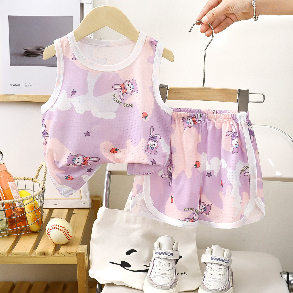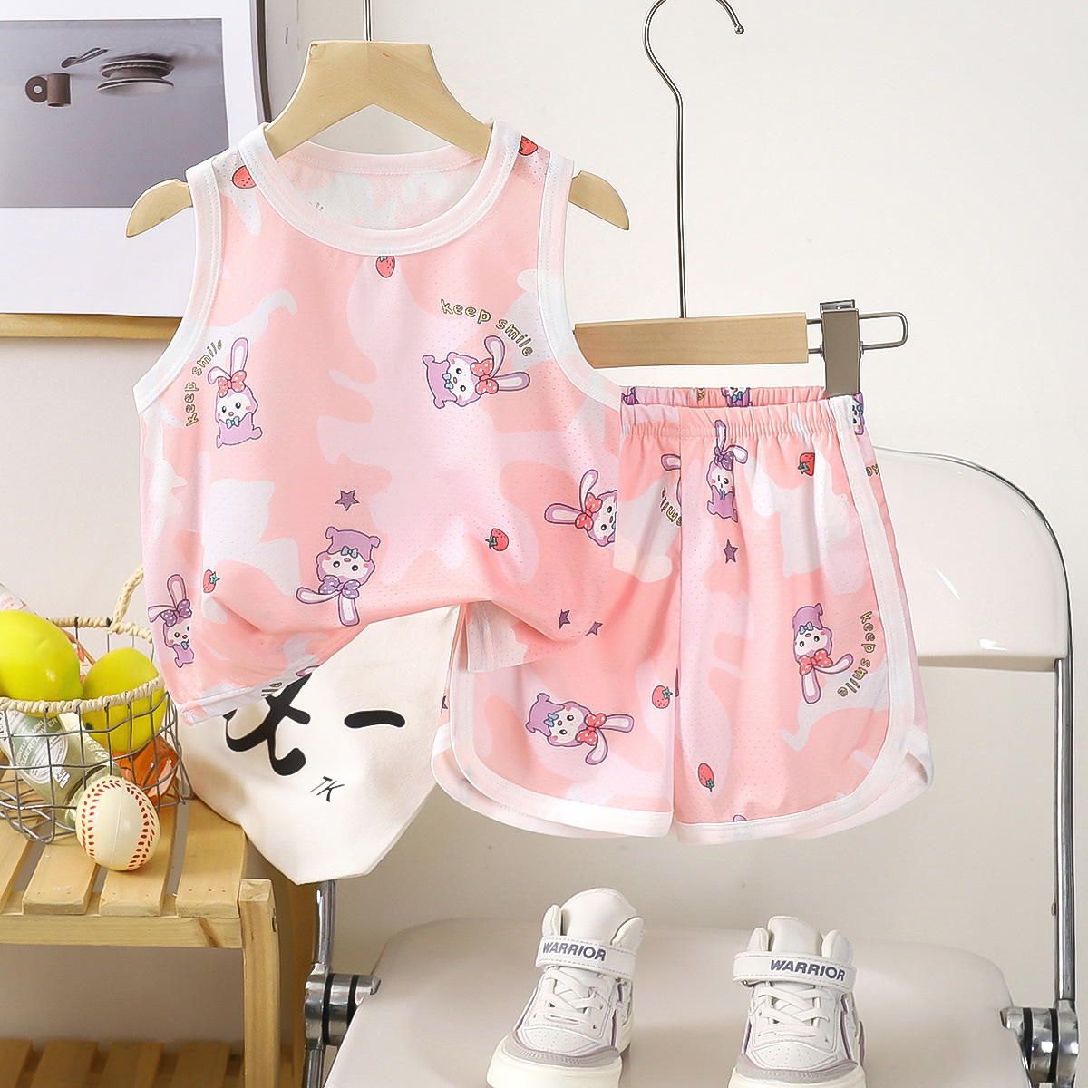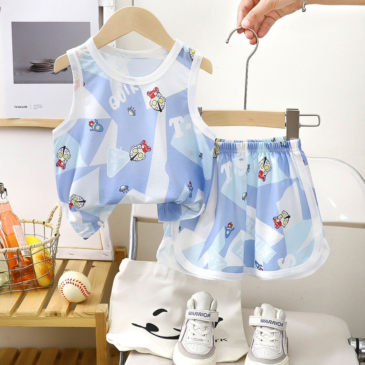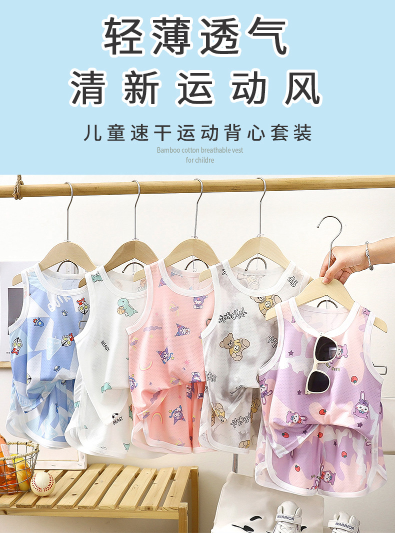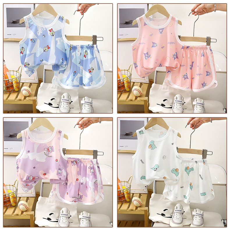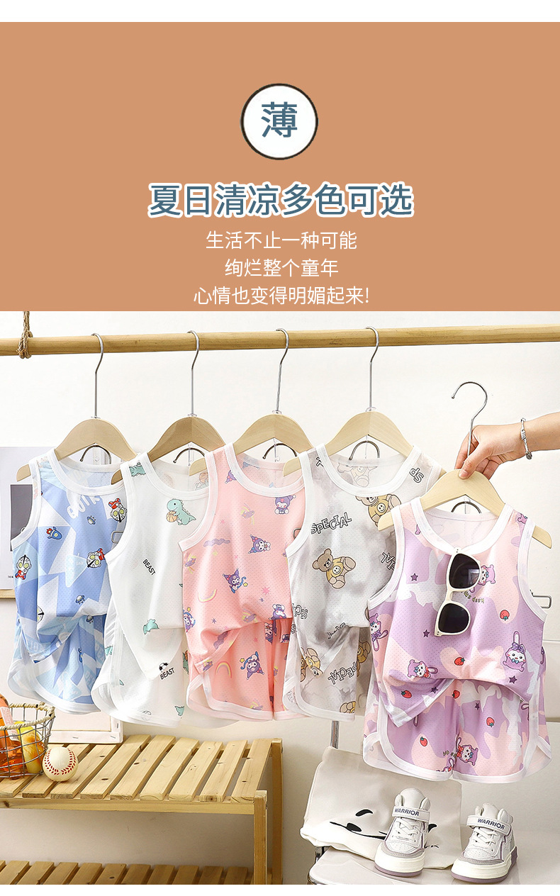 아동용 조끼 세트 클래스 A 얼음 실크 속건성 여름 얇은 서스펜더 반바지 소년 소녀 베이비 스포츠 투피스 세트스토어 가기