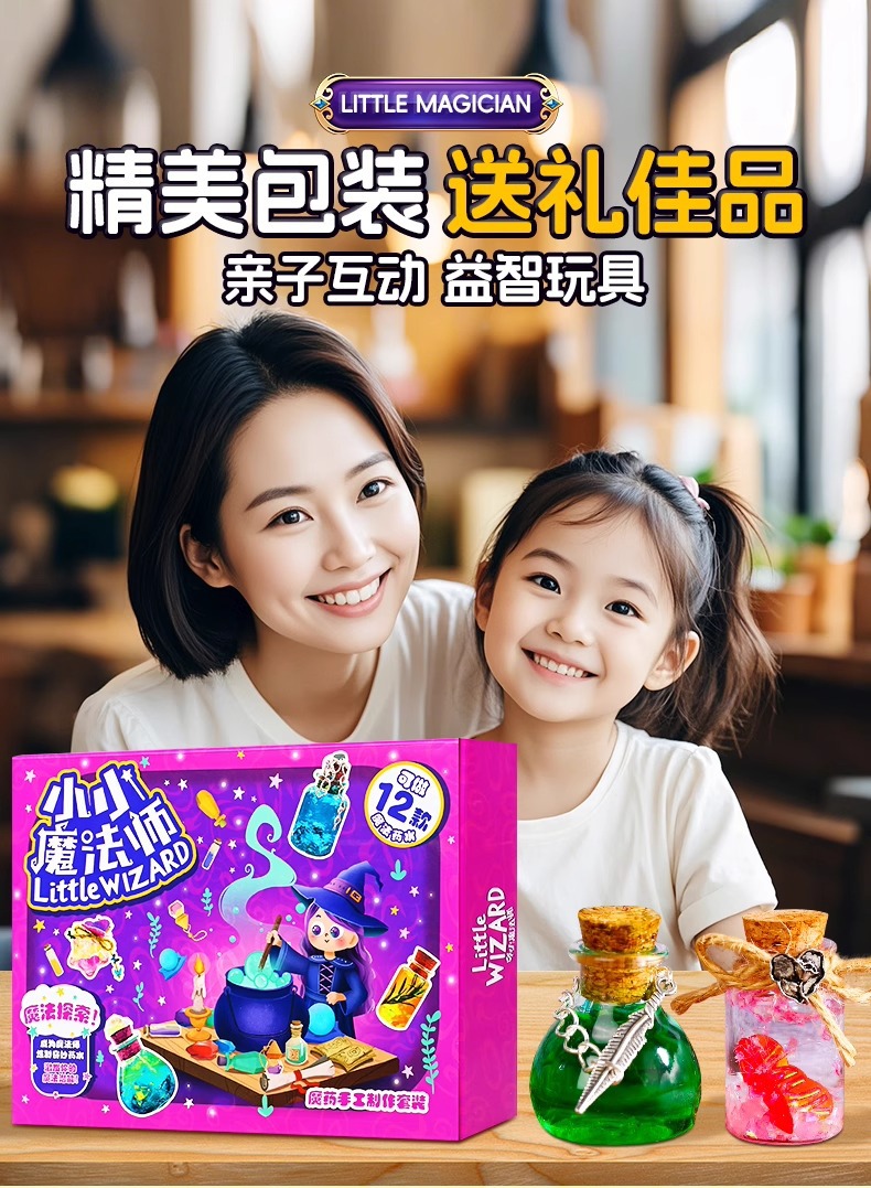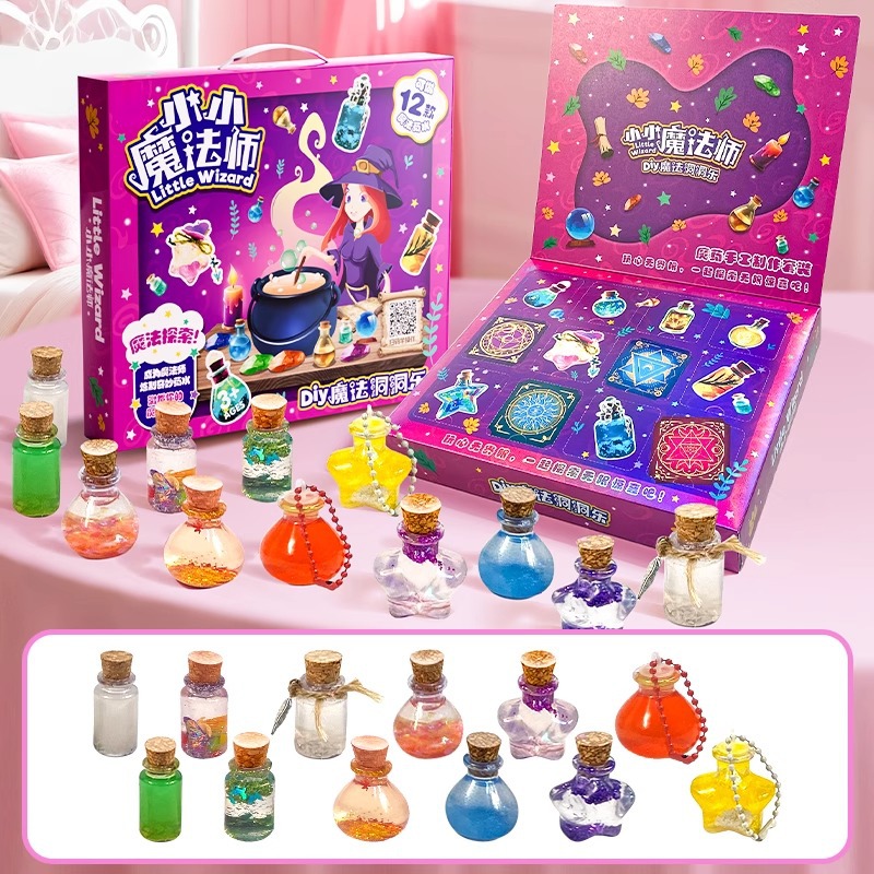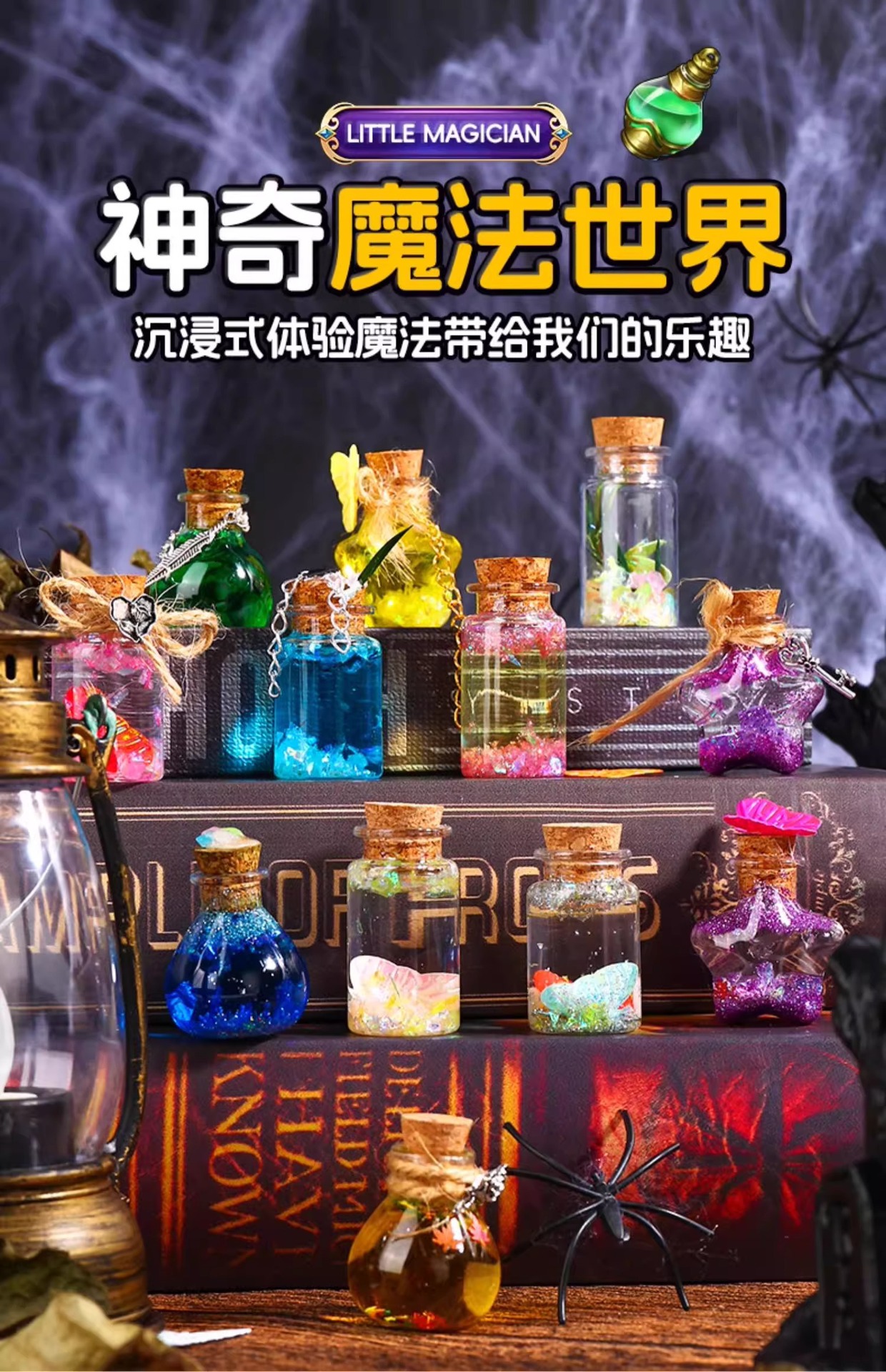 작은 마술사 소녀 DIY 시뮬레이션 마법사 과학 작은 실험 계몽 탐험 수제 마법 물약 병 선물 6스토어 가기