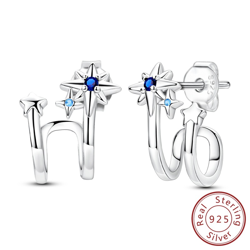 S925 스털링 실버 귀걸이 반짝 이는 별 태양 술 별 귀걸이 여성을위한 라이트 럭셔리 하이 엔드 쥬얼리 귀걸이스토어 가기