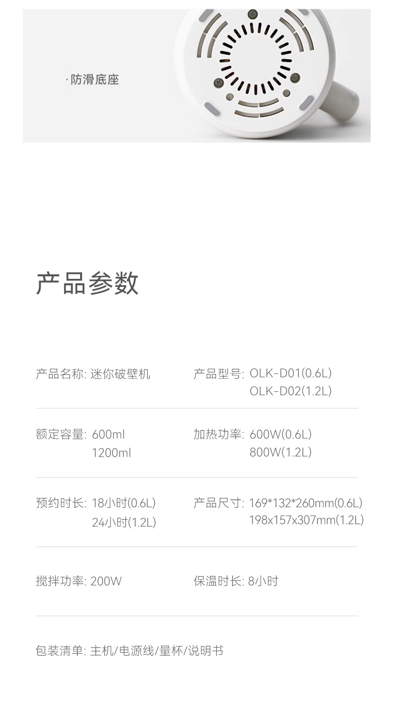 Olayks 즉시 파괴 된 두유 기계 가정용 소형 미니 완전 자동 다기능 파괴 된 기계 1 ~ 2 명을 요리하지 않고