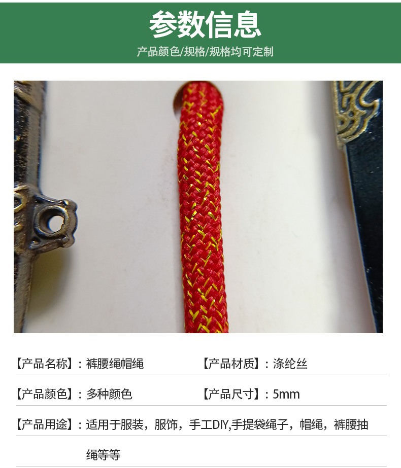 공장 재고 5mm 금사 끈 폴리에스터 끈 소파 커튼 장식 끈 쿠션 베개 롤링 끈 걸이 끈