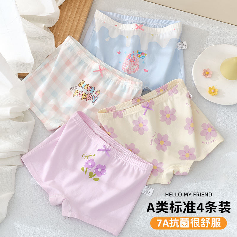 여아용 순면 A급 면 아동용 여아용 속옷, 유아, 어린이, 중대형 어린이용 가을 겨울 스타일 사각팬티, 엉덩이를 조이지 않는 디자인스토어 가기