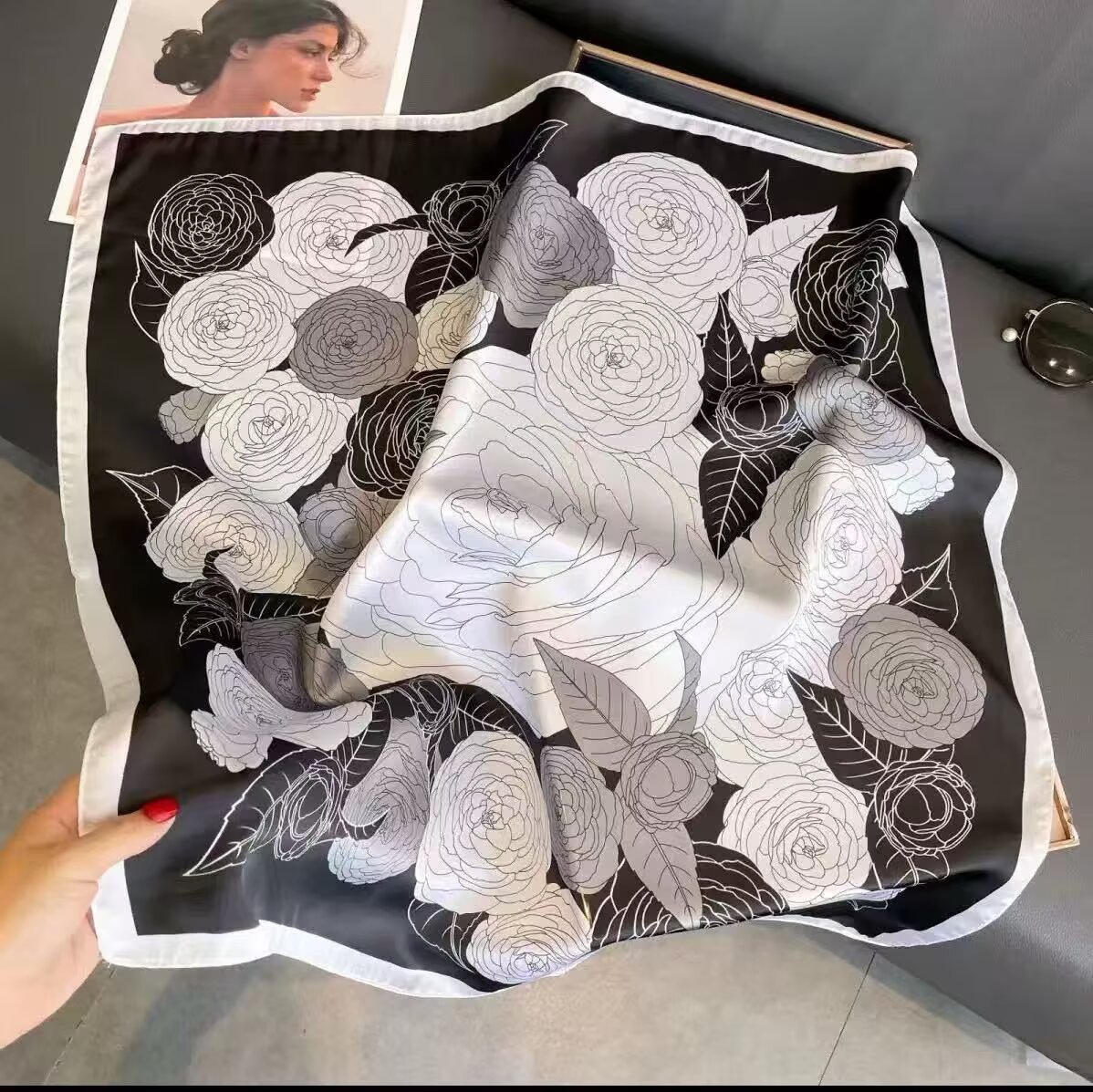 봄과 여름 70cm 새틴 작은 사각형 스카프 여성 한국어 버전 다목적 우아한 인쇄 실크 스카프 따뜻한 스카프 스카프 장식 스카프스토어 가기