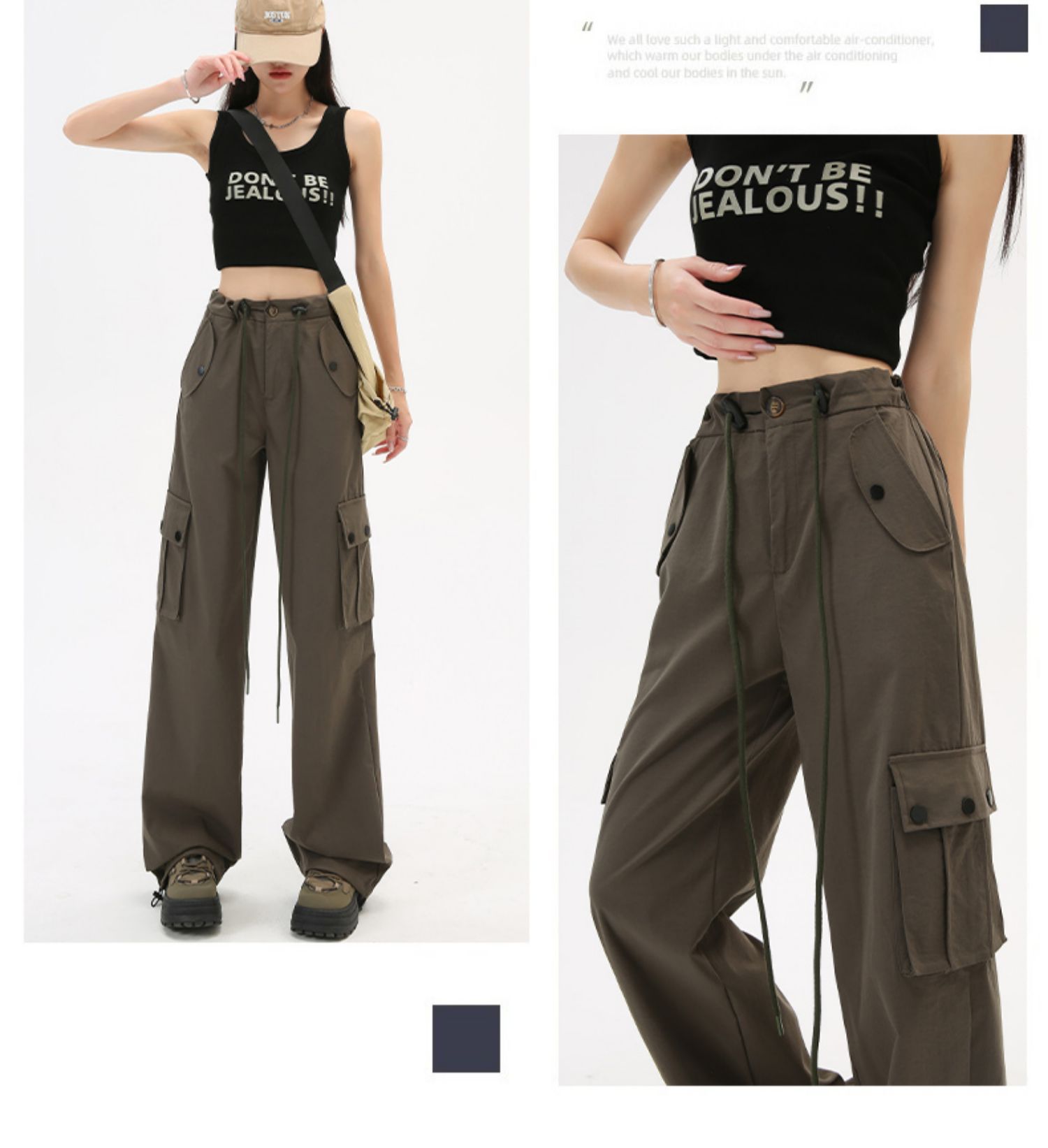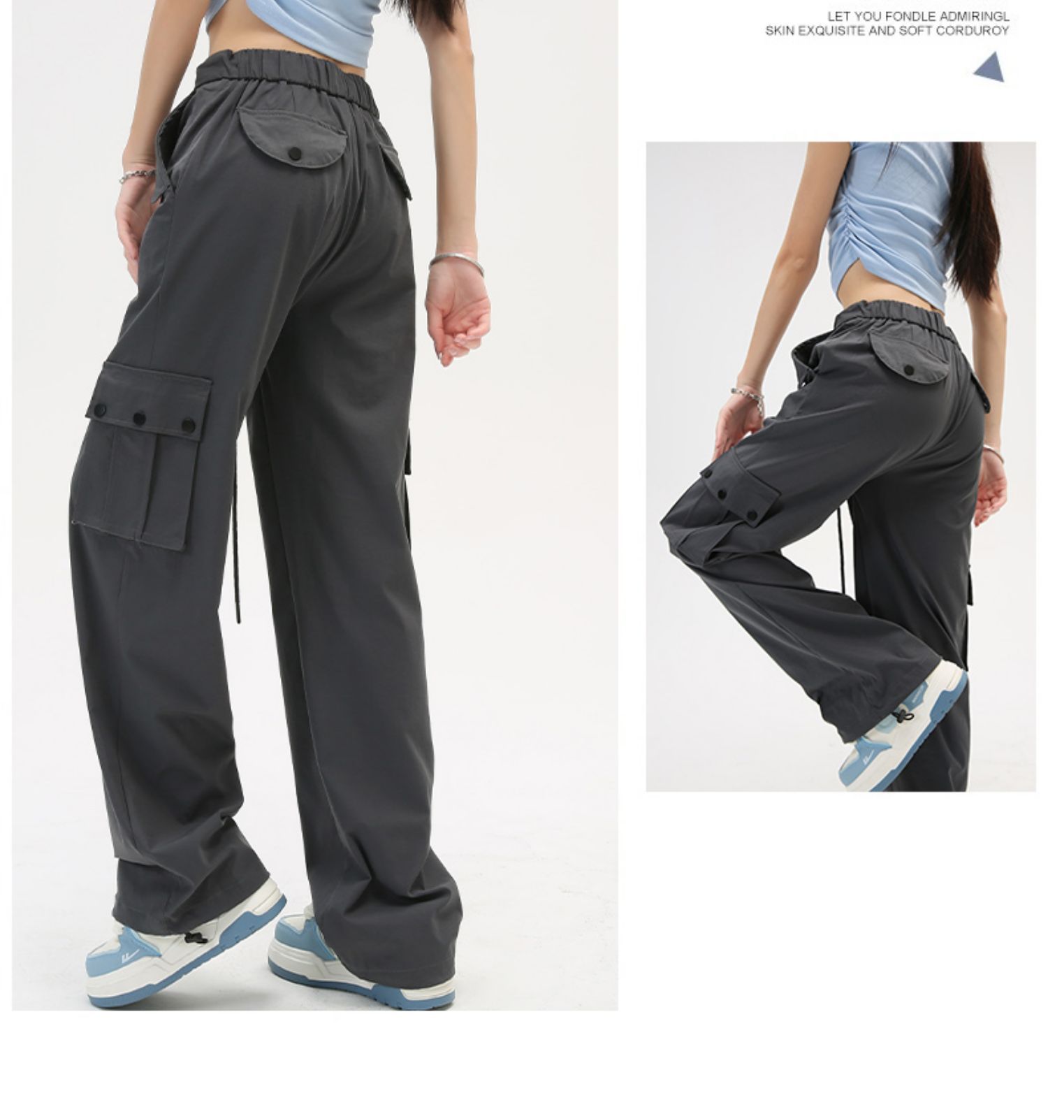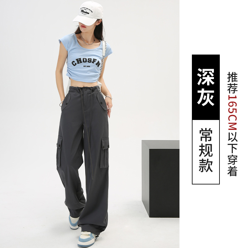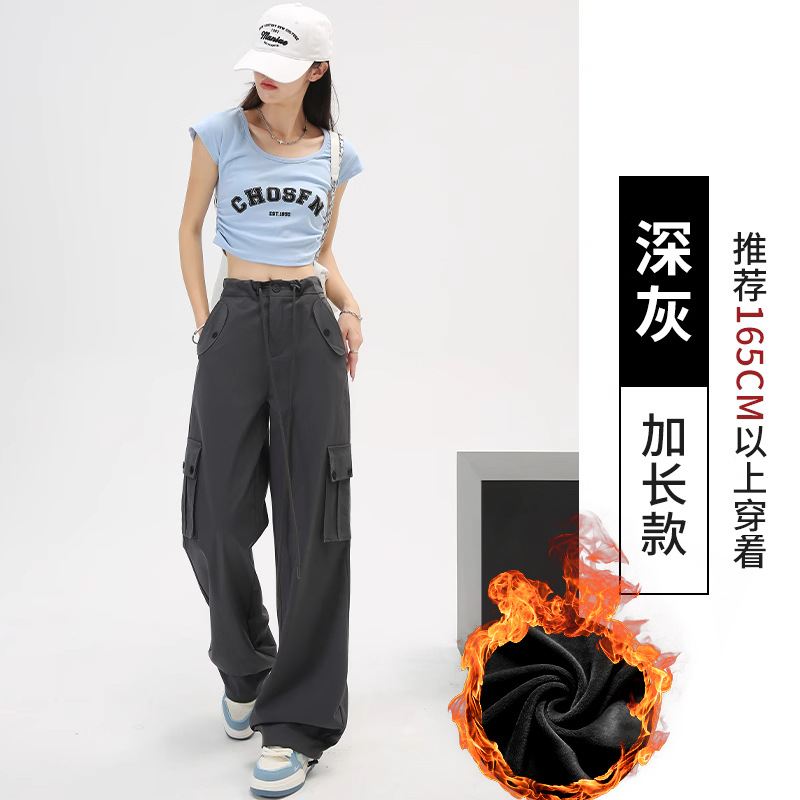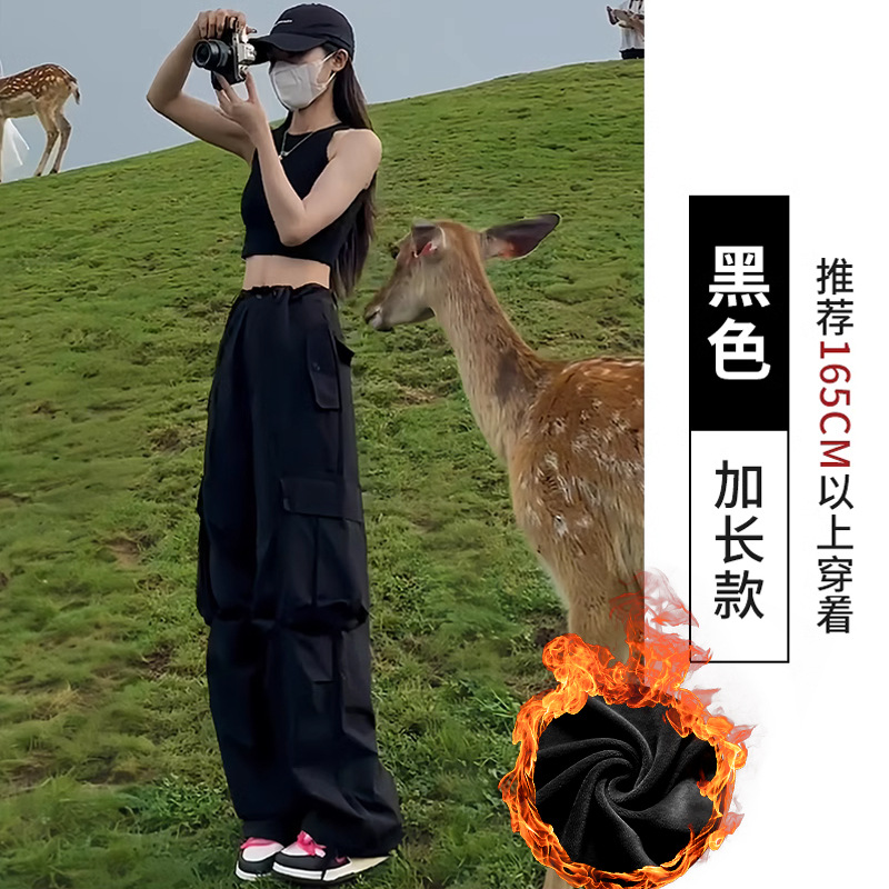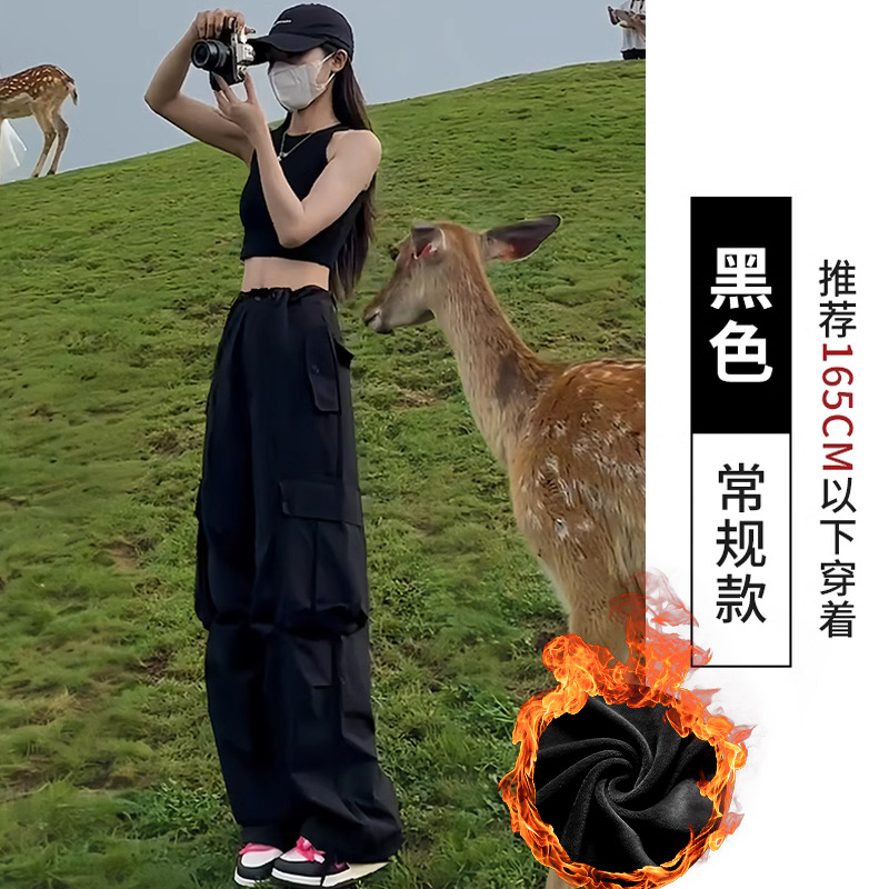 봄, 가을, 여름 여성용 아메리칸 하이킹 작업복, 하이웨이스트, 루즈, 쁘띠, 와이드 레그, 아웃도어 속건성 플러스 벨벳 스웨트팬츠스토어 가기