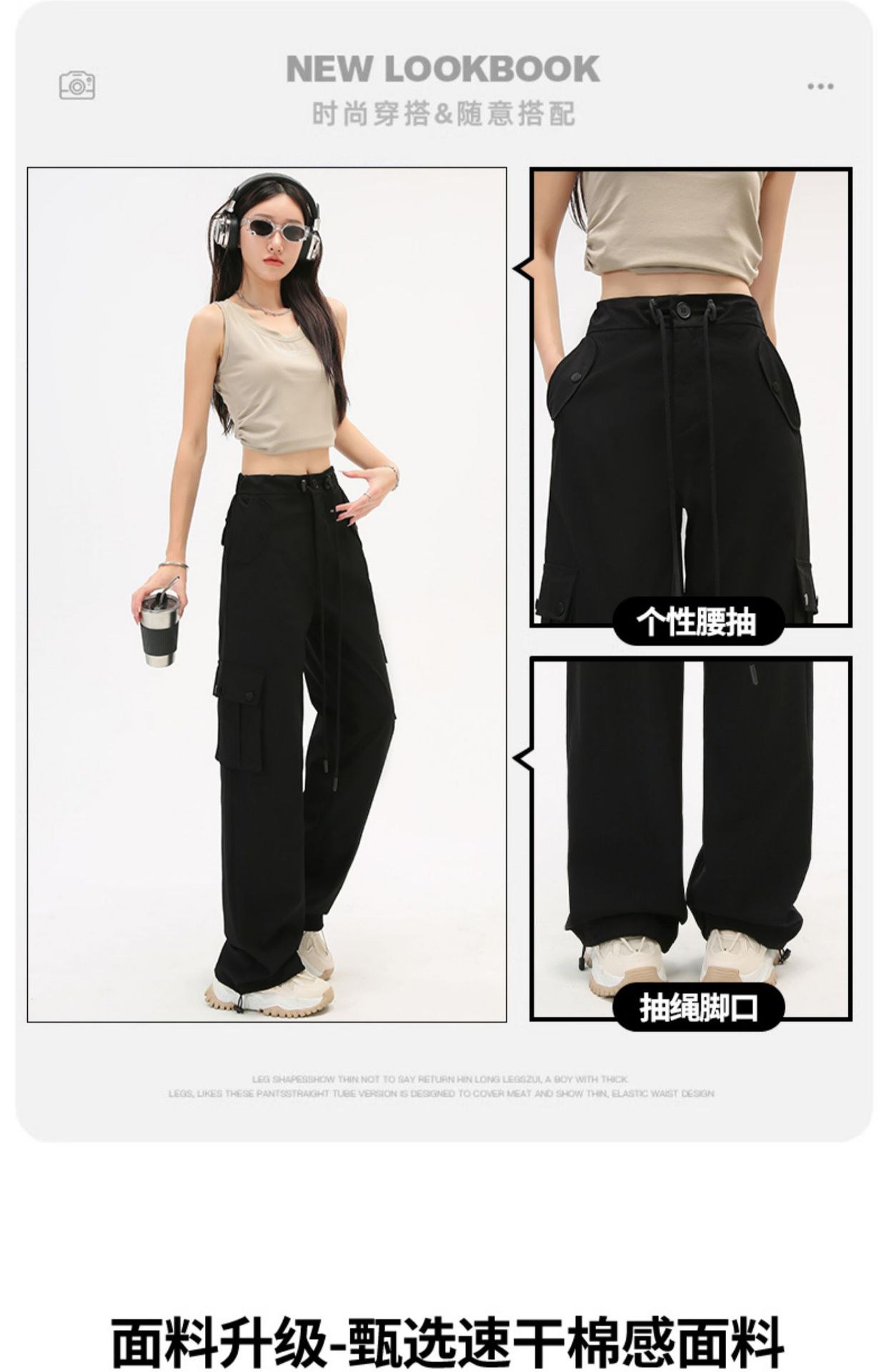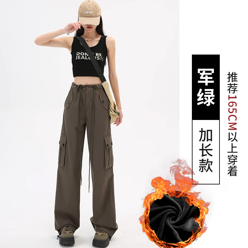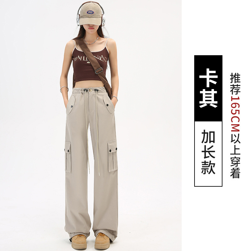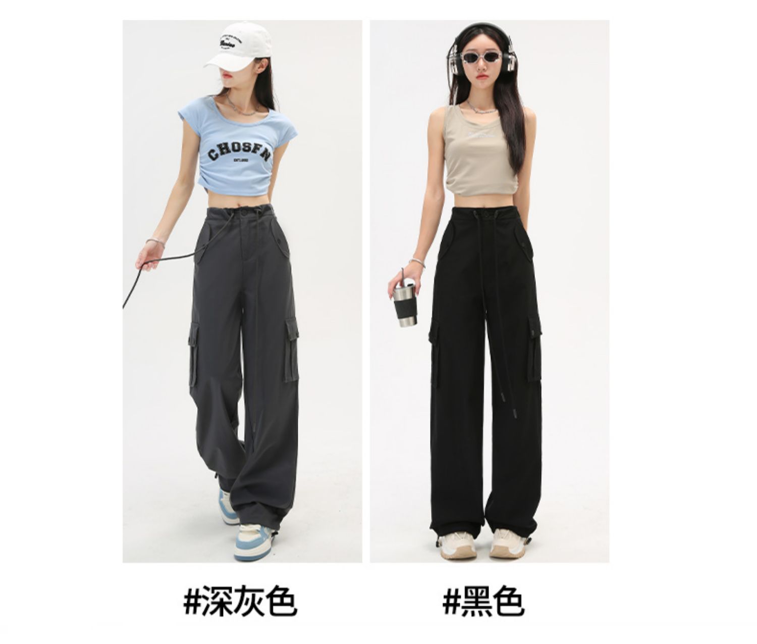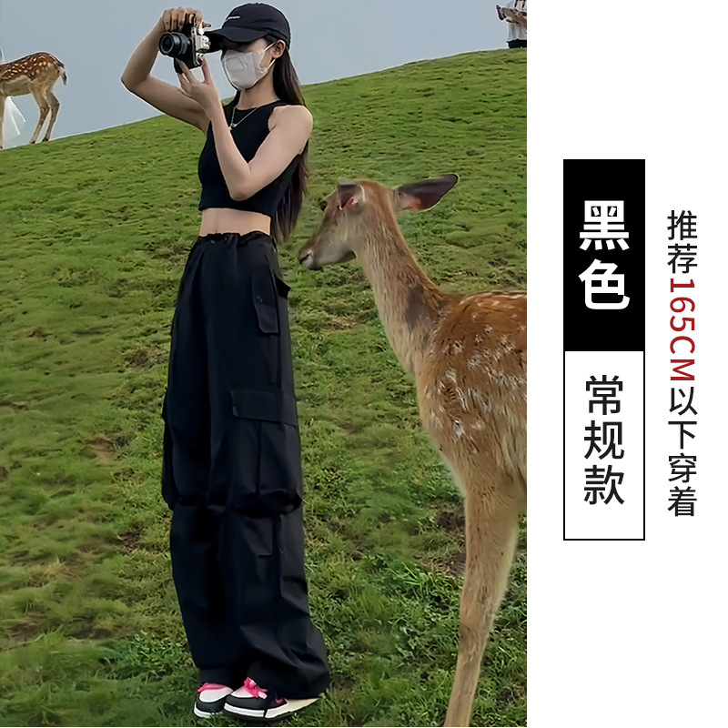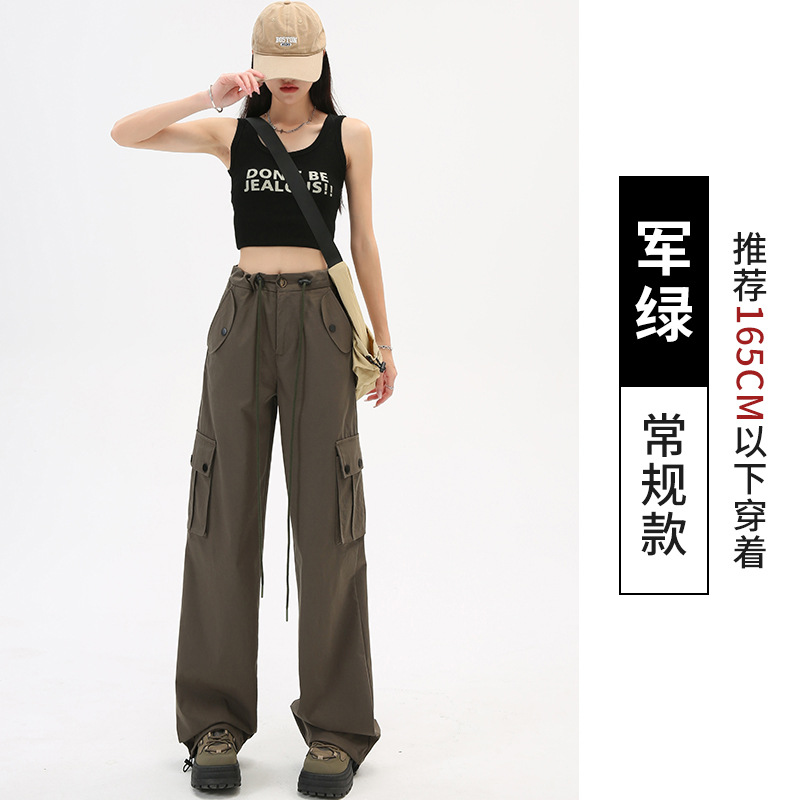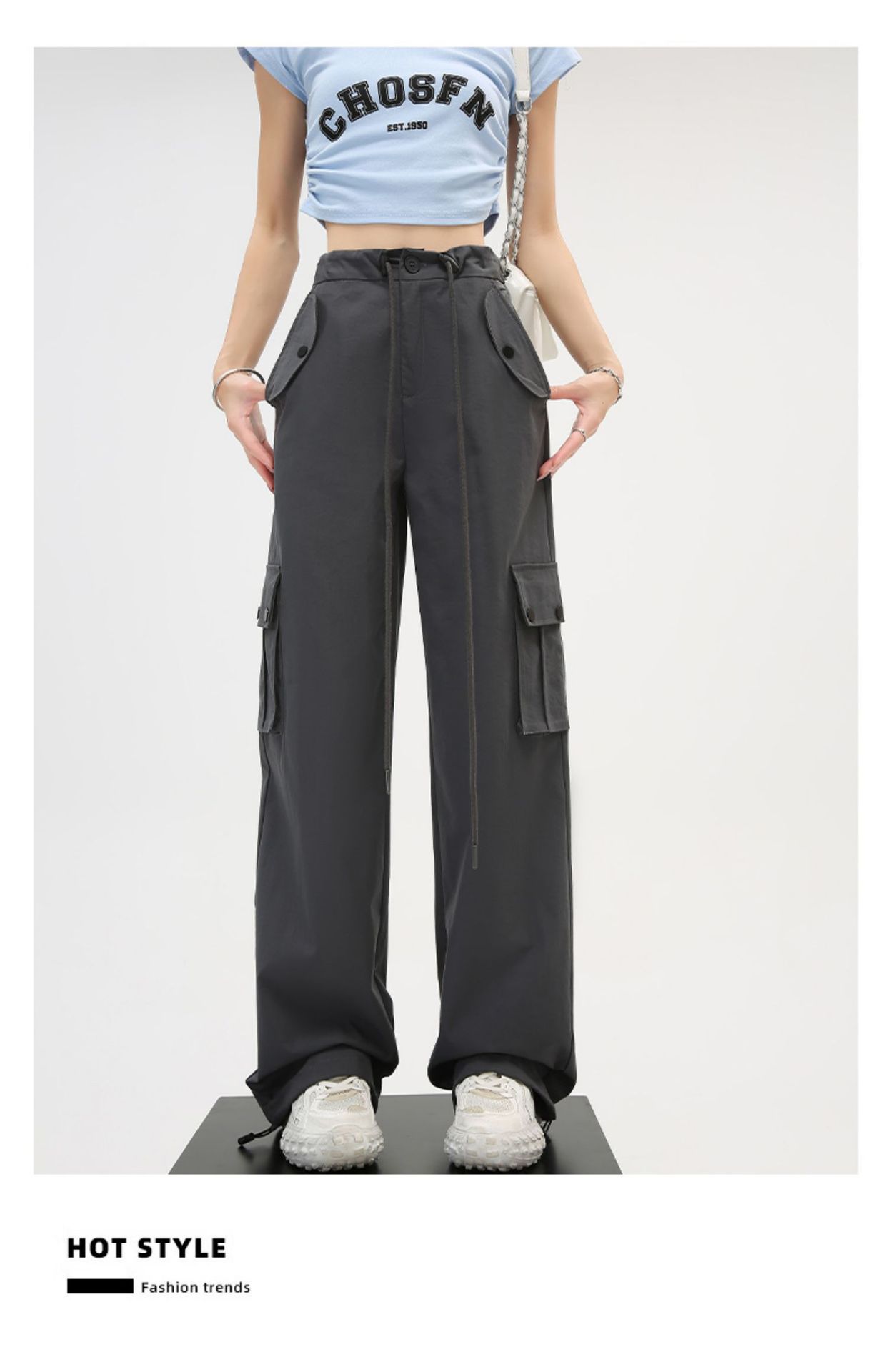 봄, 가을, 여름 여성용 아메리칸 하이킹 작업복, 하이웨이스트, 루즈, 쁘띠, 와이드 레그, 아웃도어 속건성 플러스 벨벳 스웨트팬츠스토어 가기