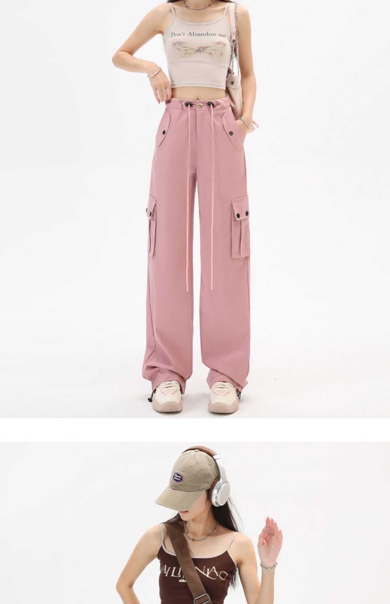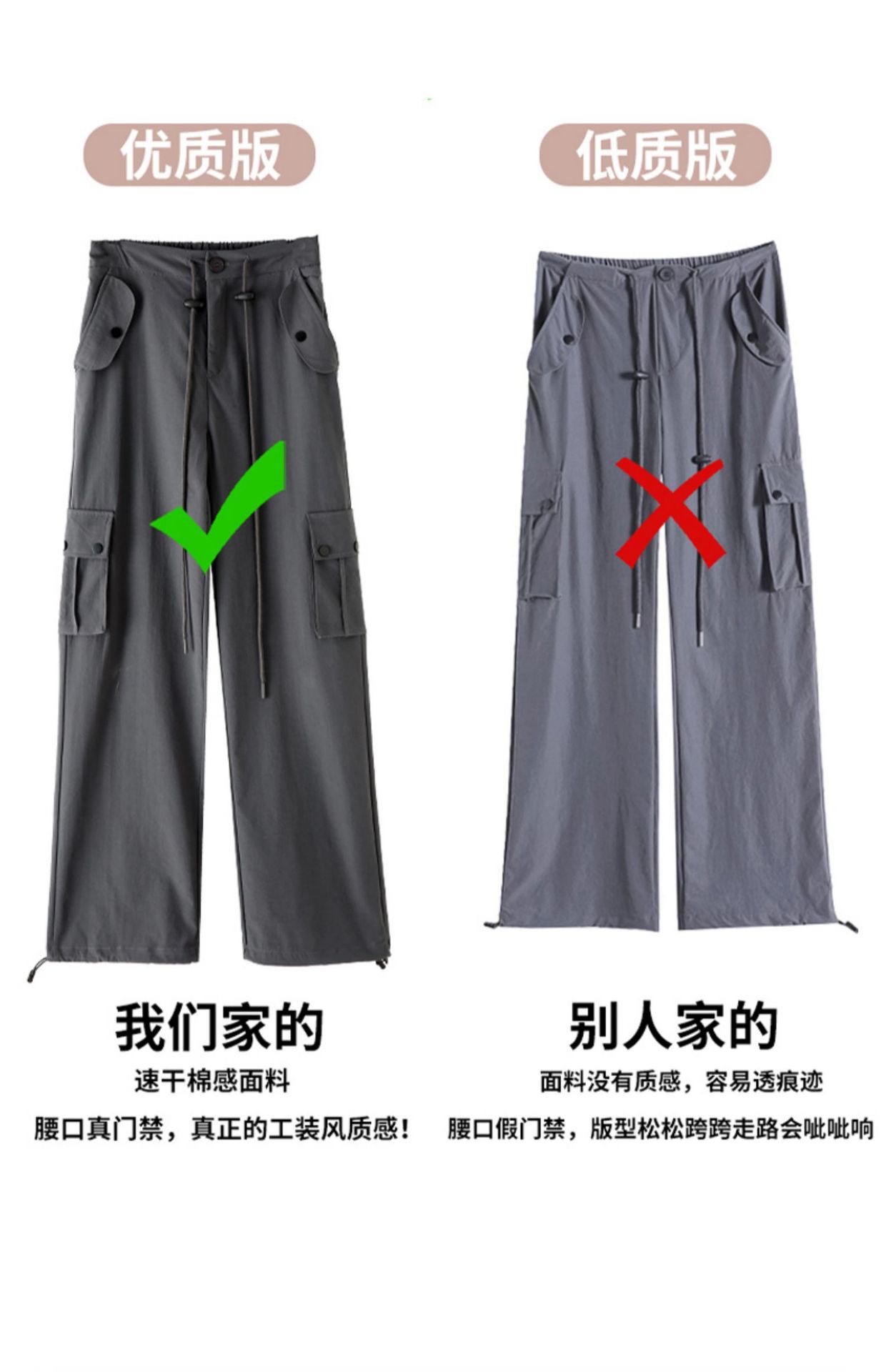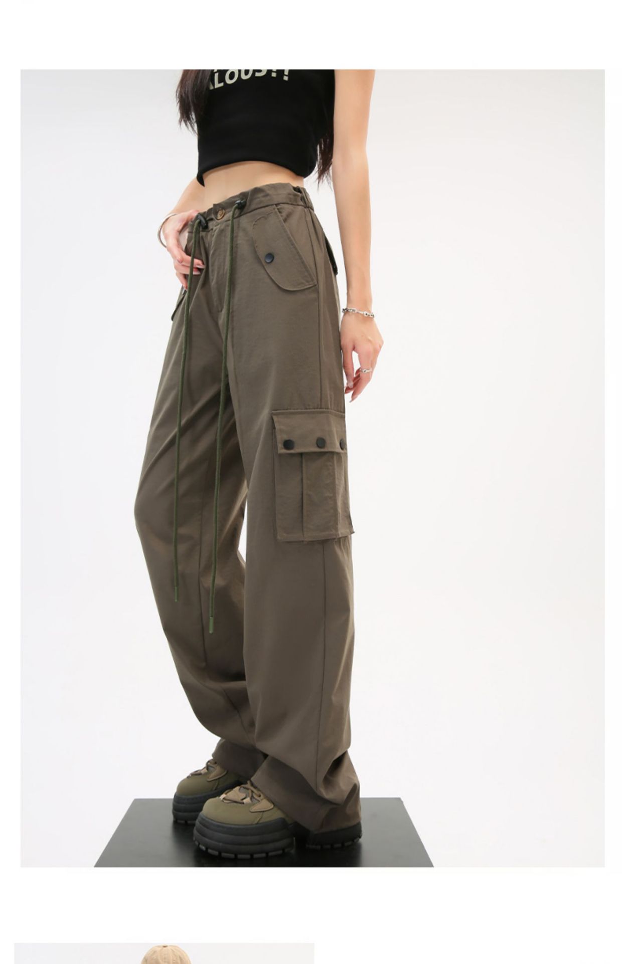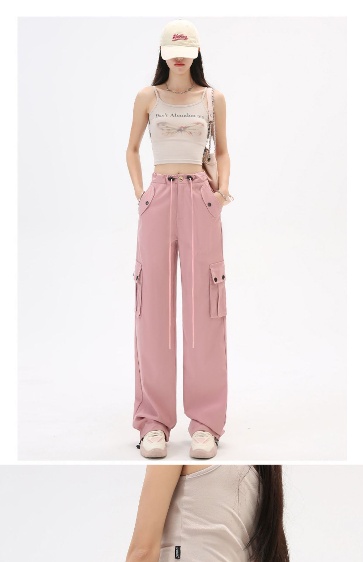 봄, 가을, 여름 여성용 아메리칸 하이킹 작업복, 하이웨이스트, 루즈, 쁘띠, 와이드 레그, 아웃도어 속건성 플러스 벨벳 스웨트팬츠스토어 가기
