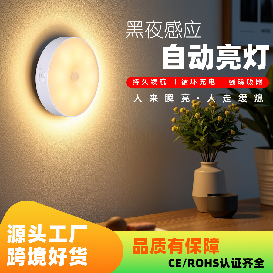 야간 홈 통로 캐비닛 LED 침대 옆 야간 조명 침실 수면 충전을위한 무선 지능형 인체 센서 램프