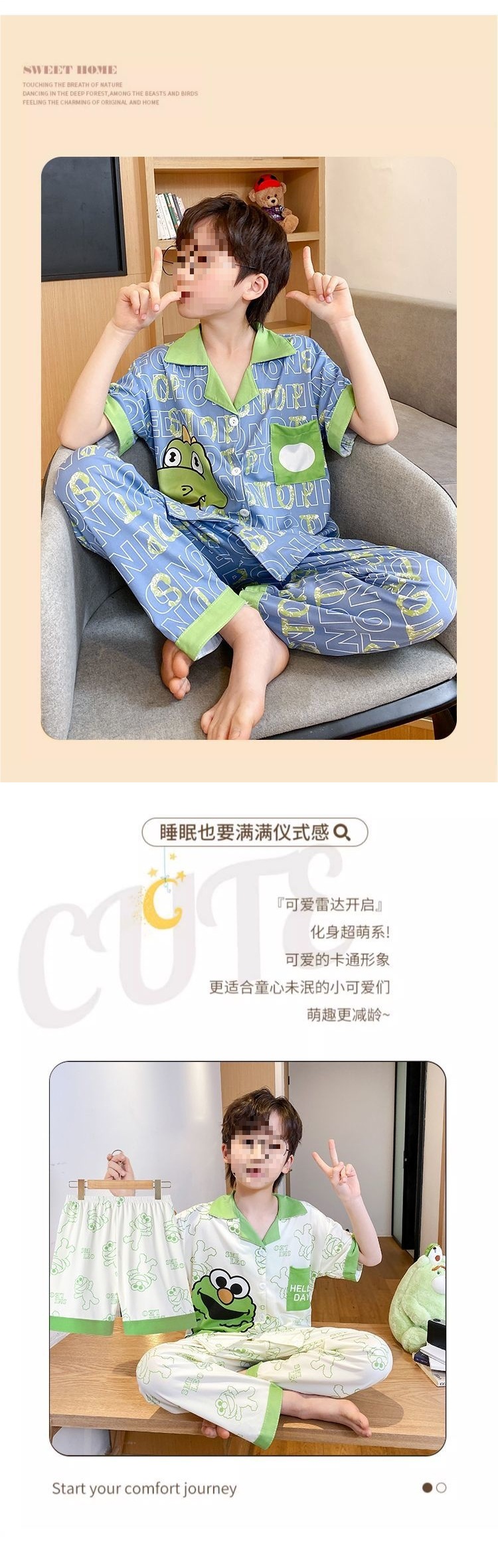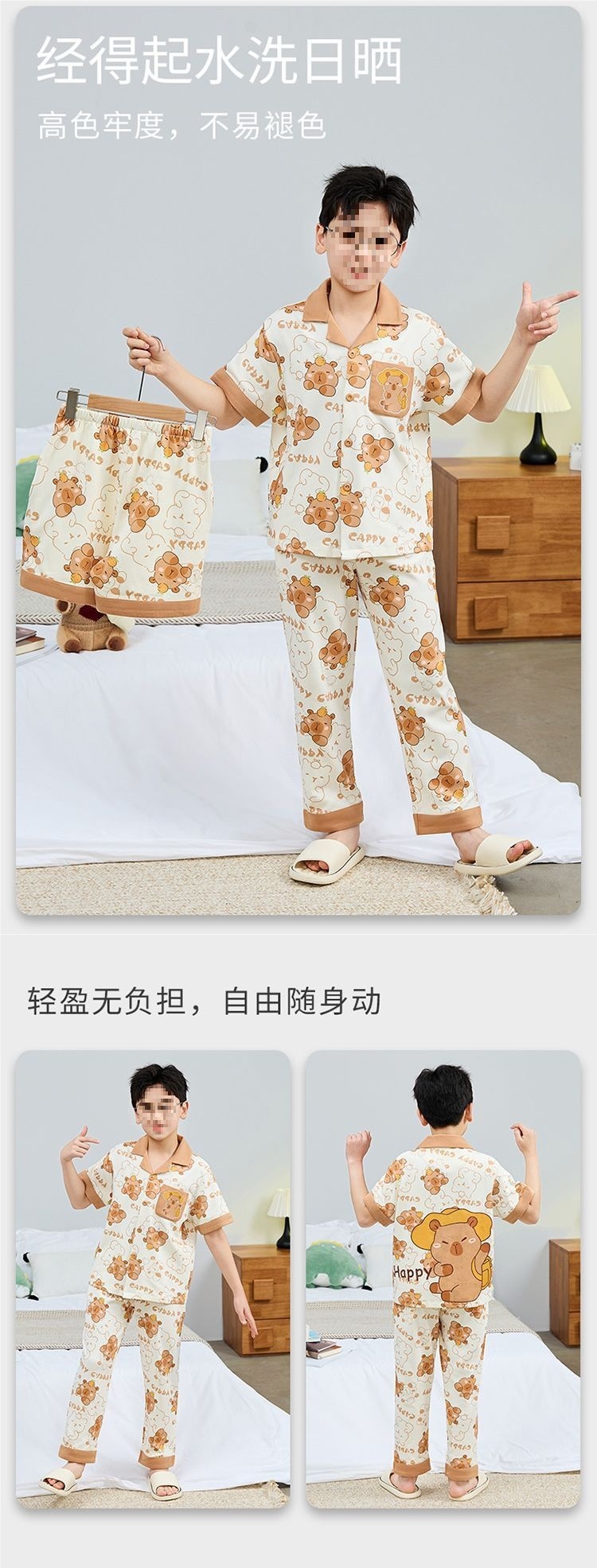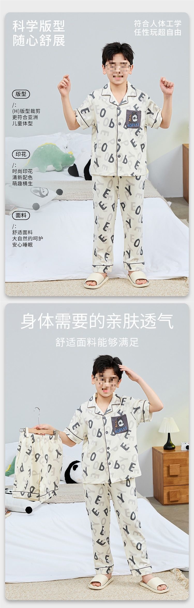 소년 여름 반팔 바지 느슨한 잠옷 3 피스 세트 얇은 만화 중형 및 대형 소년은 집 밖에서 옷을 입을 수 있습니다스토어 가기