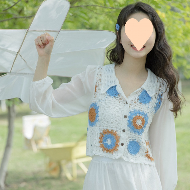 2025 봄 여름 새로운 틈새 한국 디자인 중공 스웨터 레이스 긴팔 칼라 쉬폰 셔츠 여성용스토어 가기