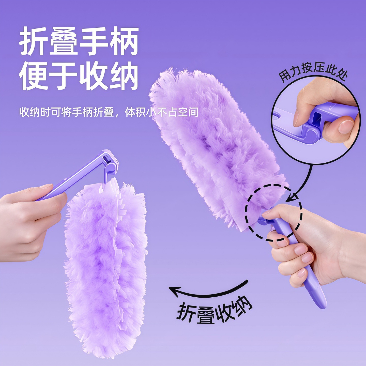 • 보라색 짧은 접이식 손잡이 1+3 먼지떨이 [opp bag]