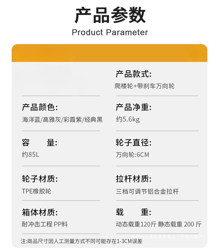 • [고급 버전은 평평하게 당길 수 있음] 75L 범용 휠 - 피아노 블랙 - 일체형 커버