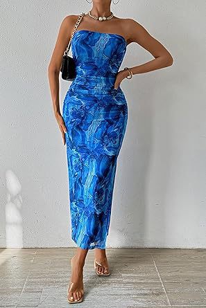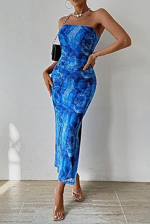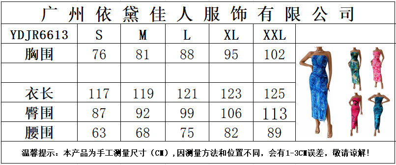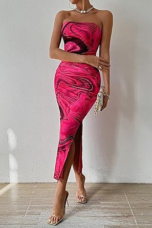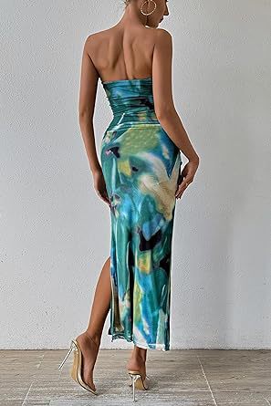 2025 유럽과 미국의 대외 무역 국경 간 여성 의류 아마존 봄 여름 새로운 스타일 튜브 탑 밑단 슬릿 민소매 프린트 드레스스토어 가기