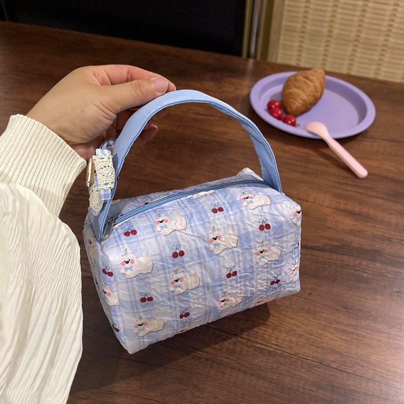 • 빨간색 체크무늬 곰돌이 휴대용 수납 가방