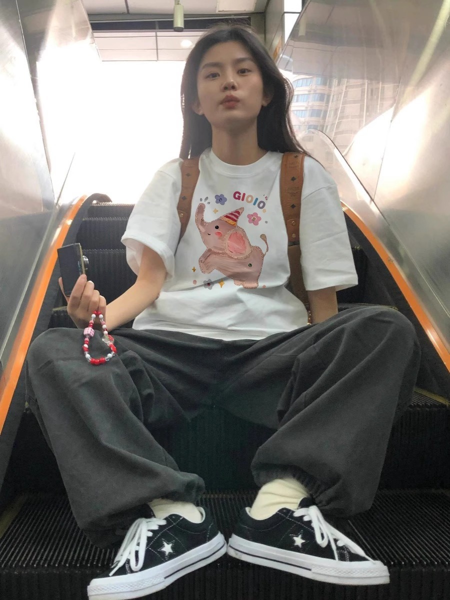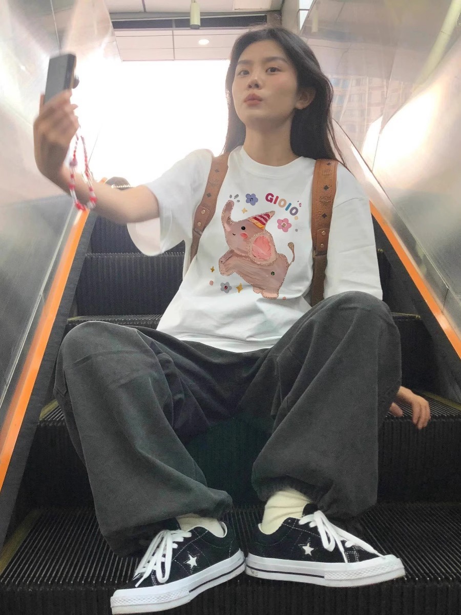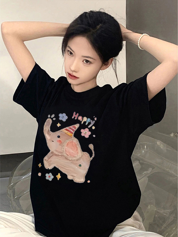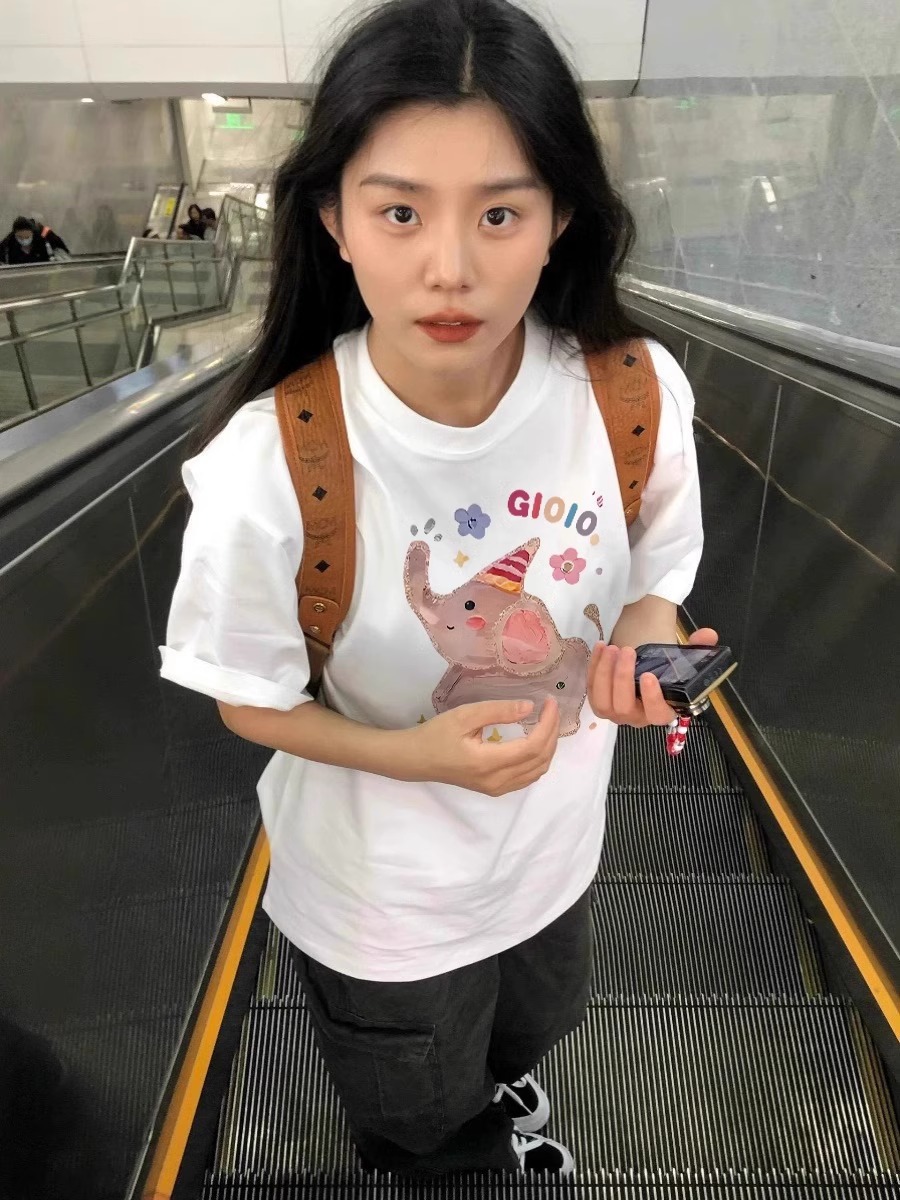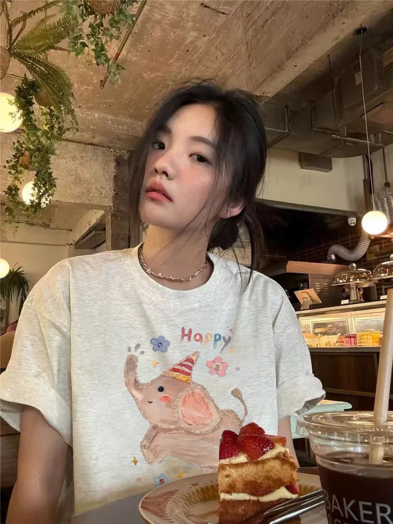 홍콩 스타일 청소년 여름 반팔 티셔츠 여성 대학 스타일 2025 새로운 트렌디 브랜드 ins American 루즈 반팔 탑스토어 가기