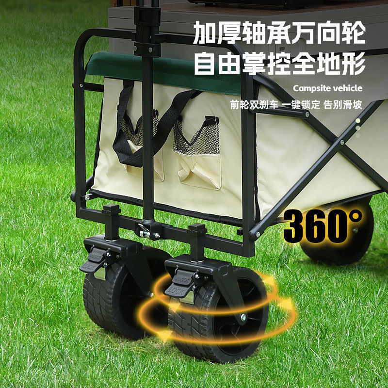 • [상위 구성] 카드 그린/ 10inch 탱크 더블 브레이크 유니버설 휠 - 스톨 접이식 테이블 + 야외 캠핑카 /