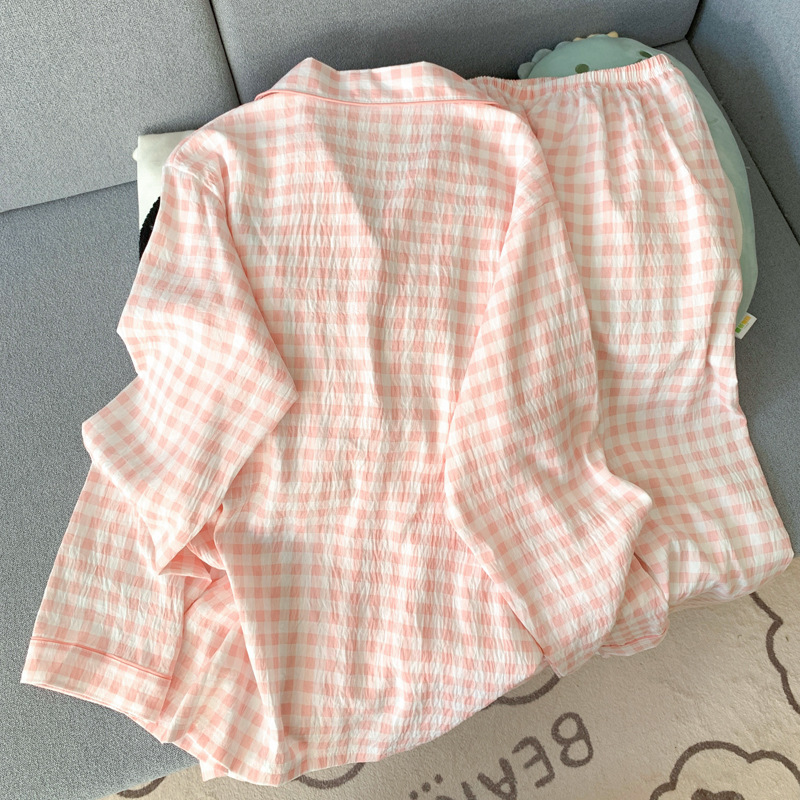 여성을위한 국경 간 잠옷 봄과 가을 얇은 긴팔 바지 만화 느슨한 학생 구름 면화 가정 의류 세트 여름
