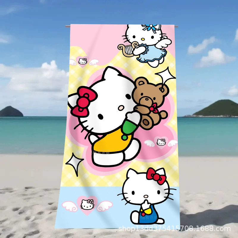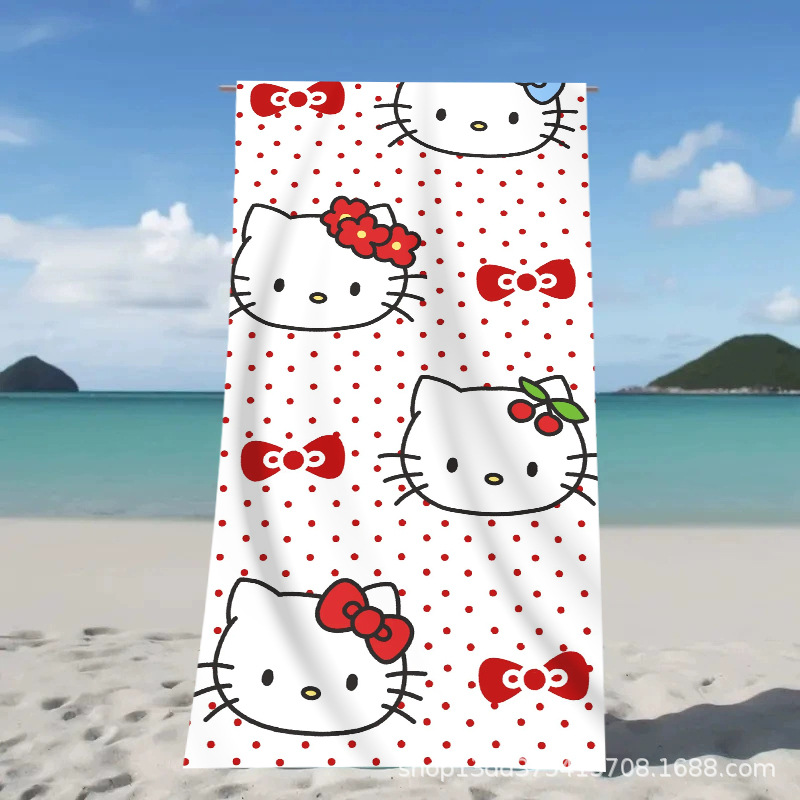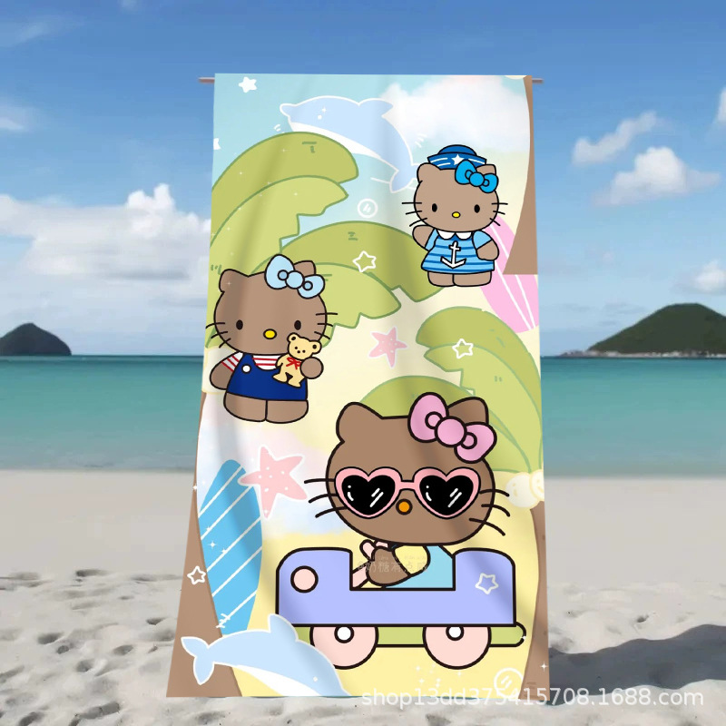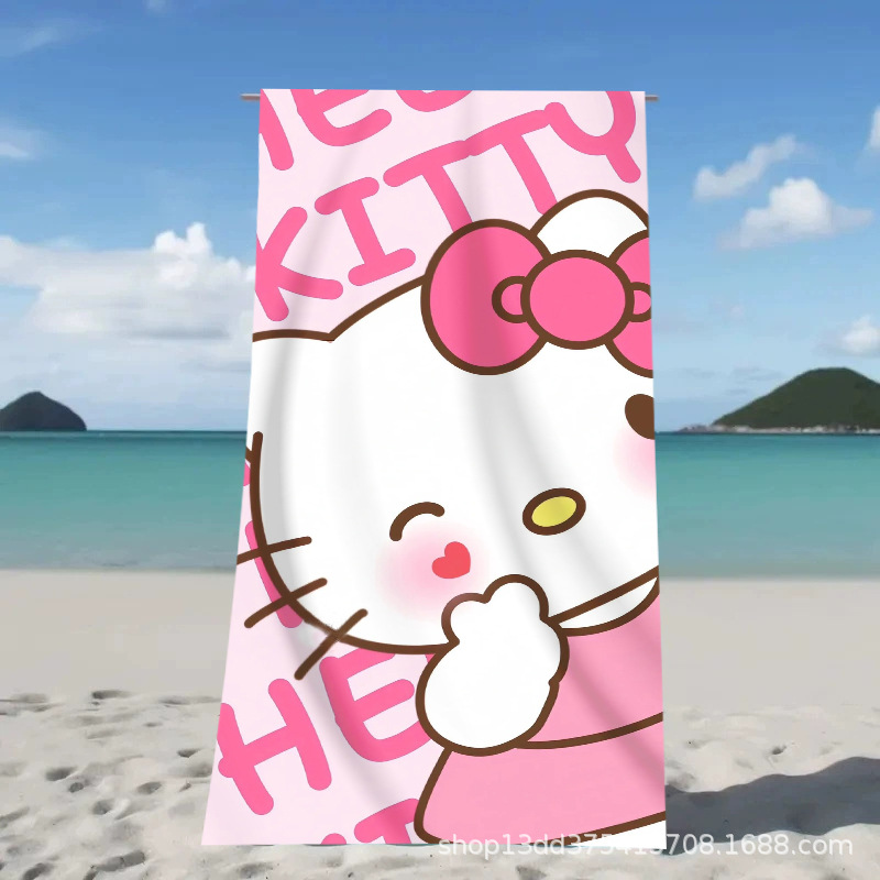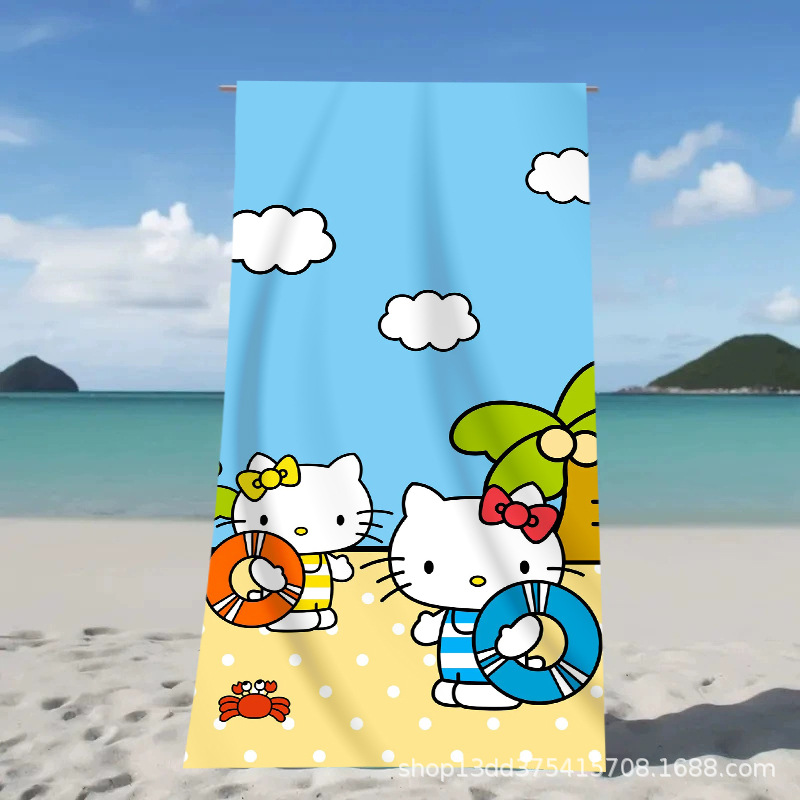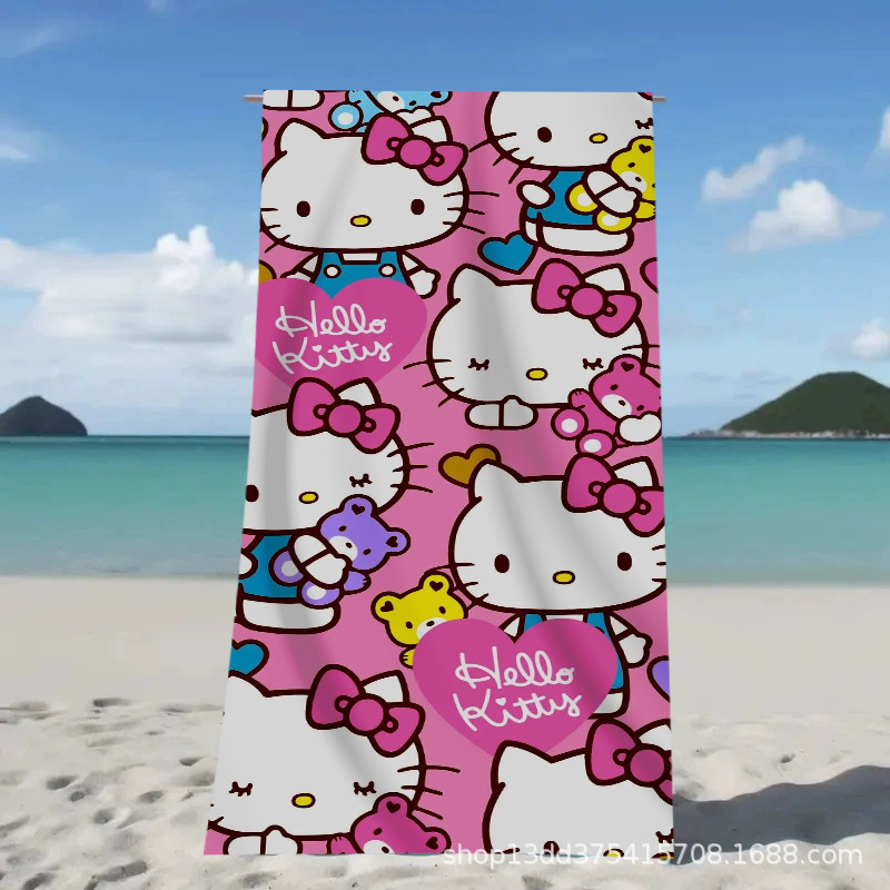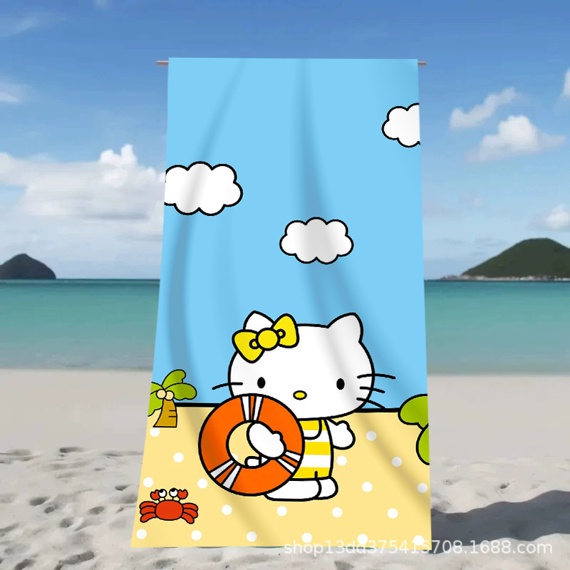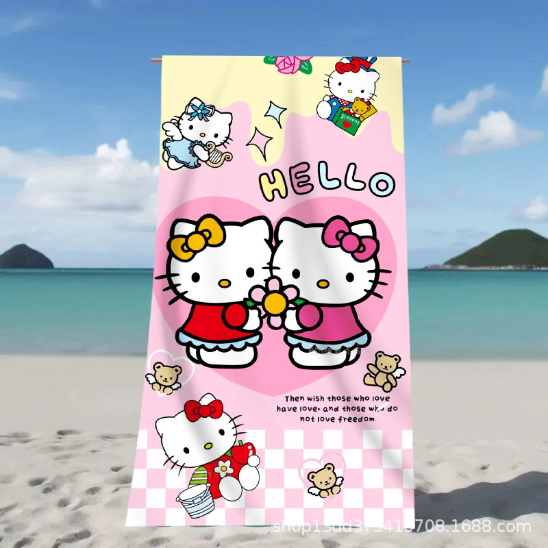 헬로키티 만화 비치 타월 양면 벨벳 목욕 타월 디지털 프린트 어린이 흡습 속건 타월 부모-자녀 목욕 타월스토어 가기